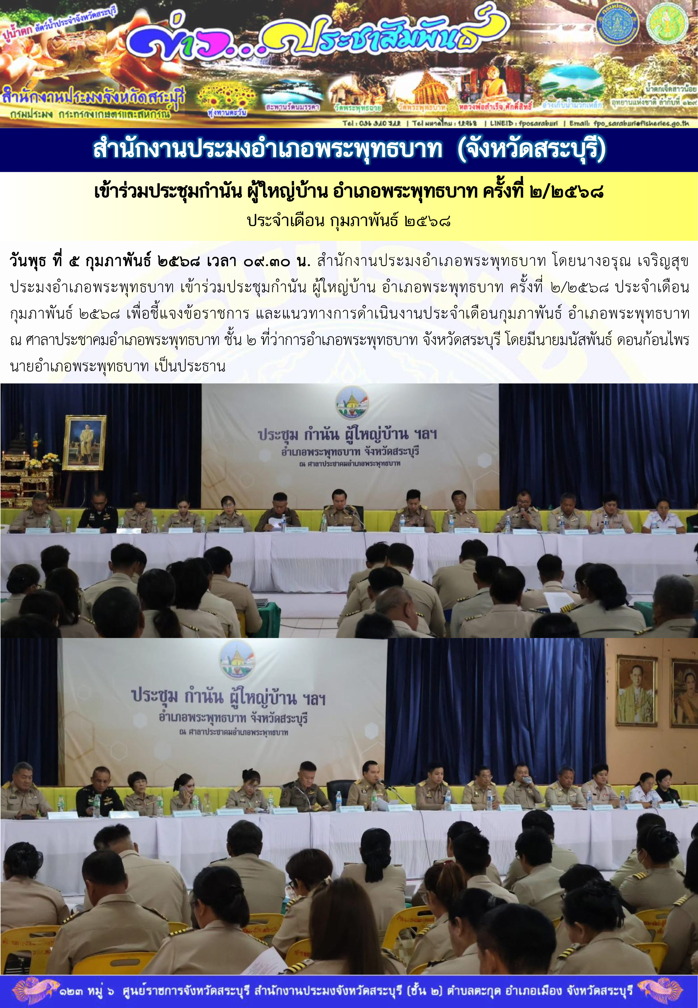 สำนักงานประมงอำเภอพระพุทธบาท เข้าร่วมประชุมกำนัน ผู้ใหญ่บ้าน อำเภอพระพุทธบาท ครั้งที่ 2/2568 ประจำเดือน กุมภาพันธ์ 2568