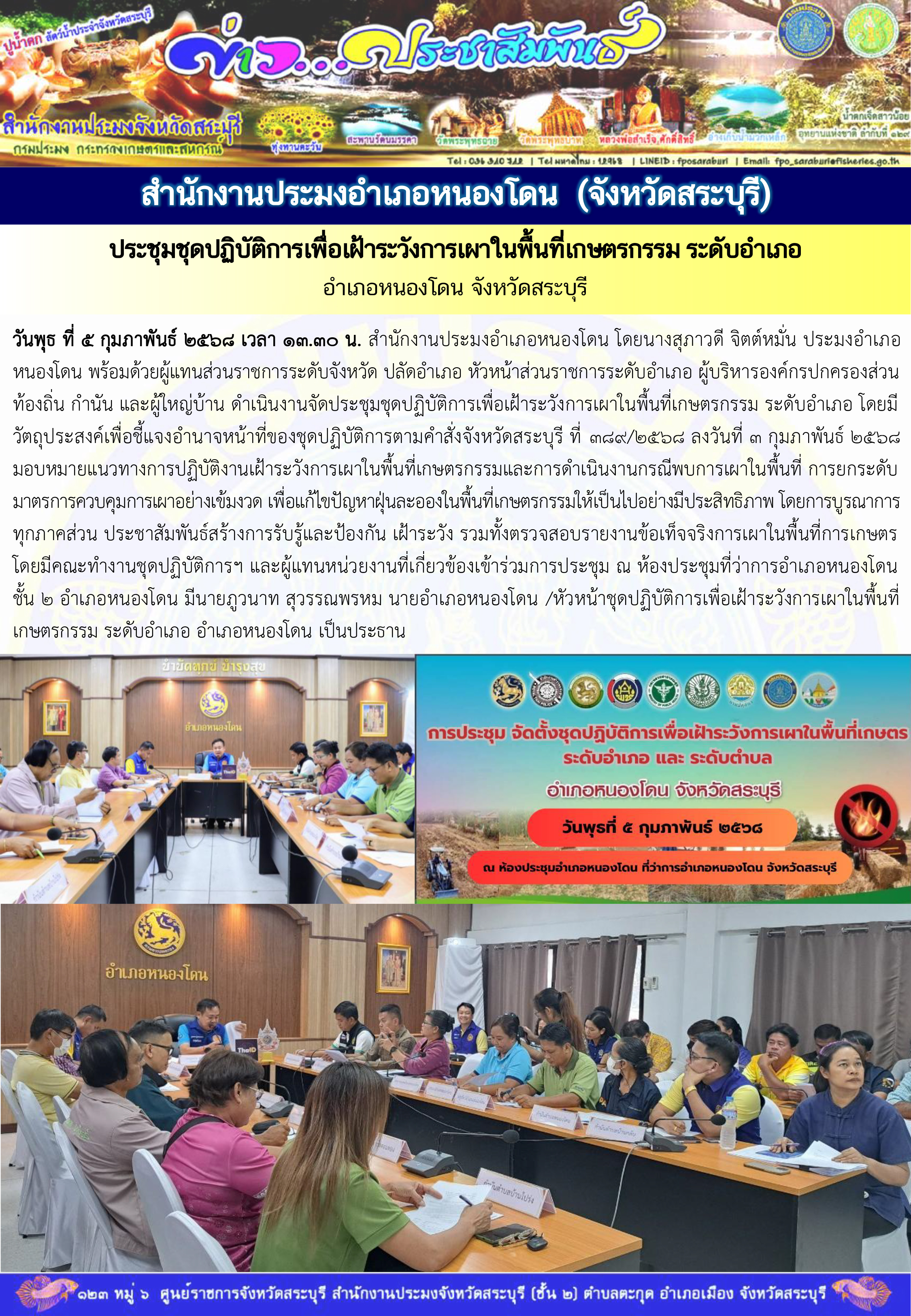 สำนักงานประมงอำเภอหนองโดน ประชุมชุดปฏิบัติการเพื่อเฝ้าระวังการเผาในพื้นที่เกษตรกรรม ระดับอำเภอ อำเภอหนองโดน จังหวัดสระบุรี