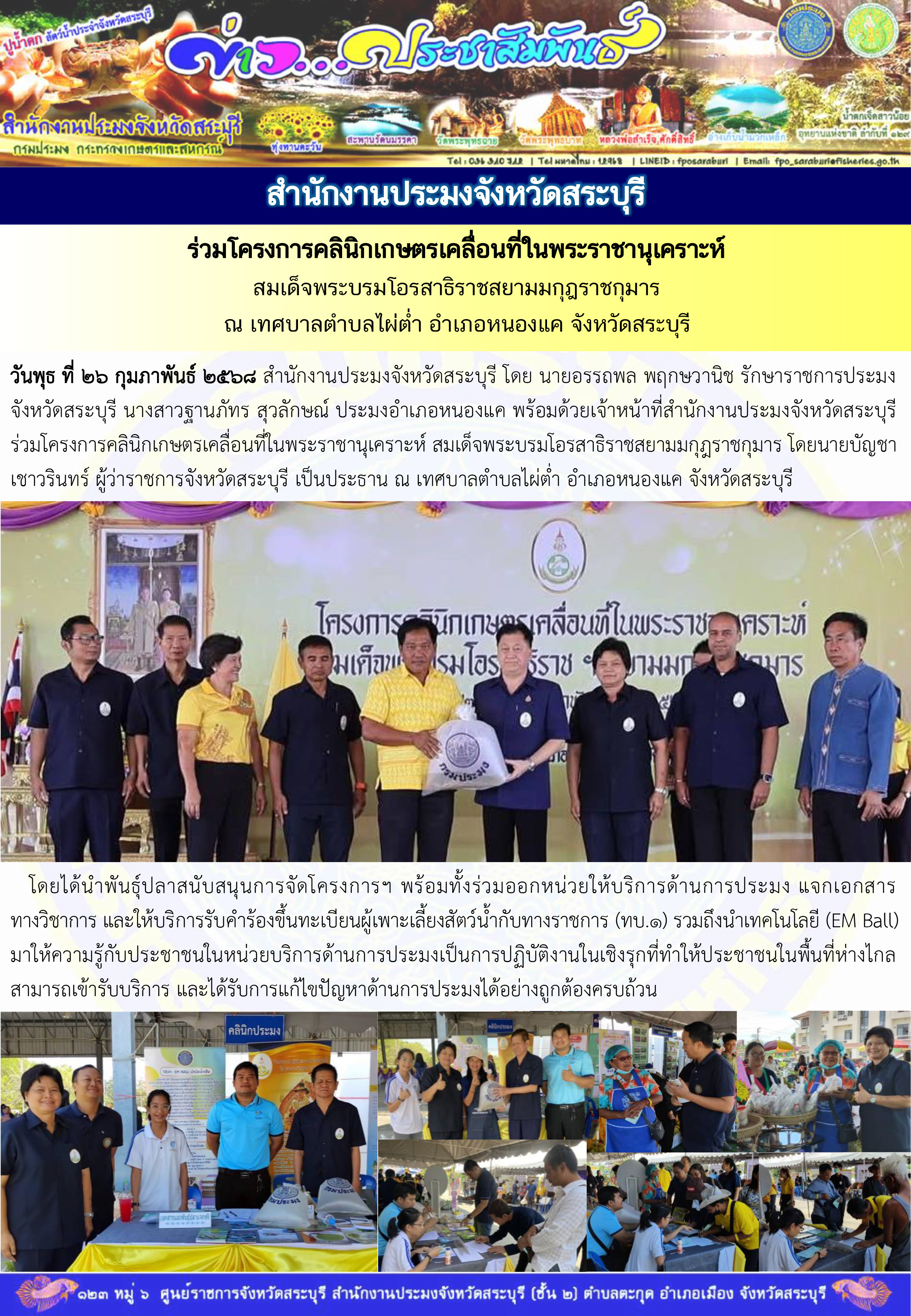ภารกิจประจำวันที่ 26 กุมภาพันธ์ 2568 สำนักงานประมงจังหวัดสระบุรี
