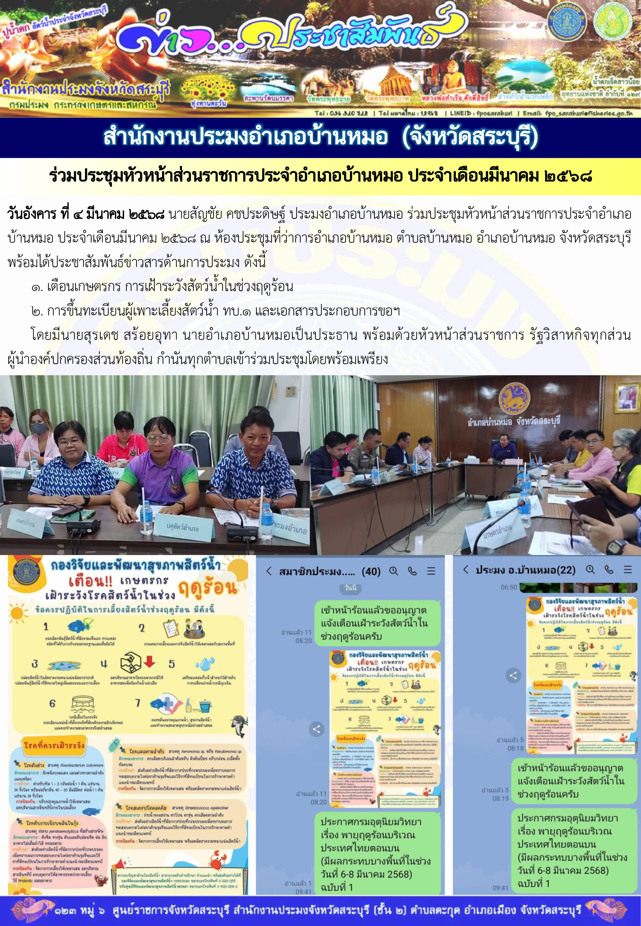 สำนักงานประมงอำเภอบ้านหมอ ร่วมประชุมหัวหน้าส่วนราชการประจำอำเภอบ้านหมอ ประจำเดือนมีนาคม 2568