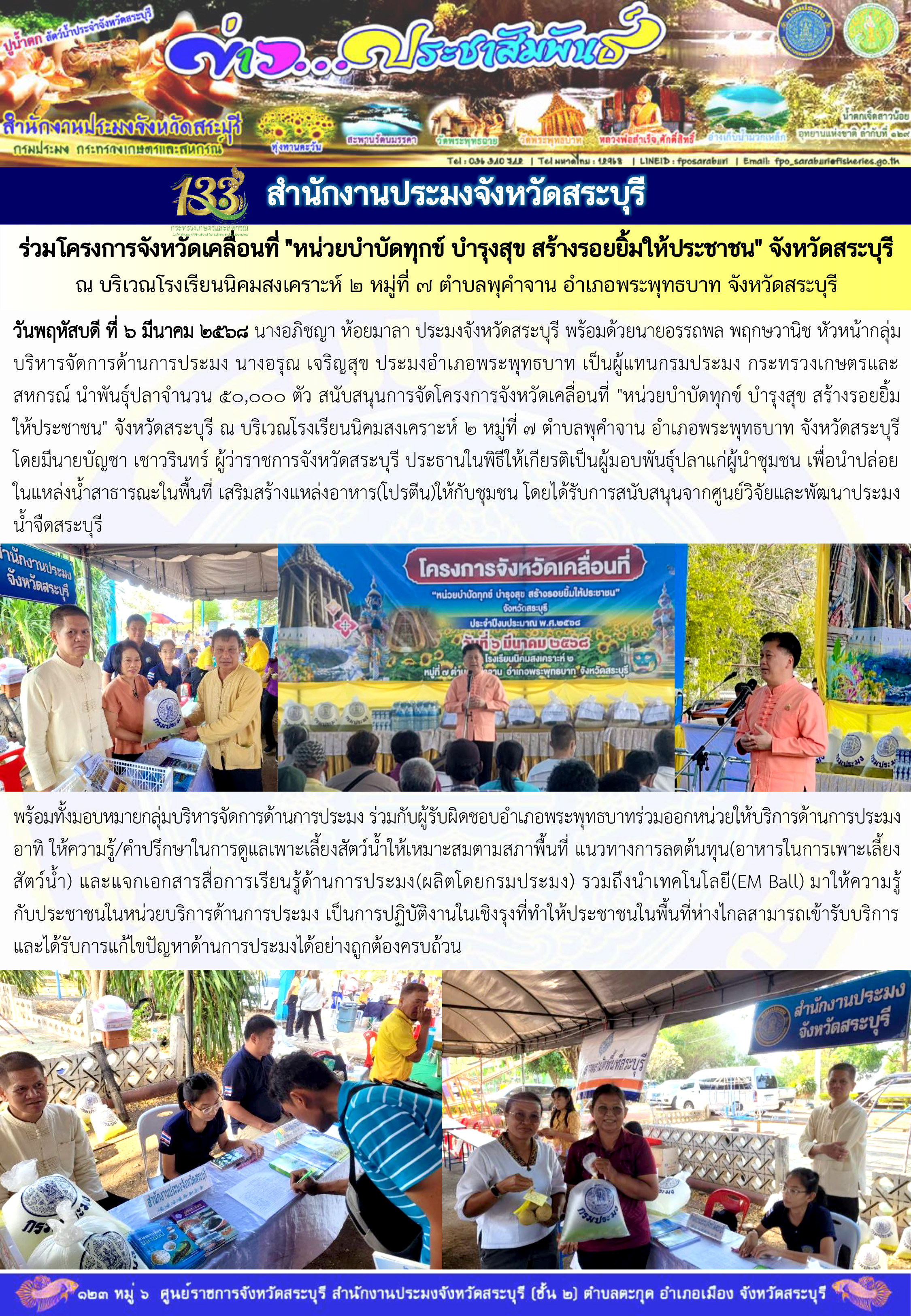 ภารกิจประจำวันที่ 6 มีนาคม 2568 สำนักงานประมงจังหวัดสระบุรี