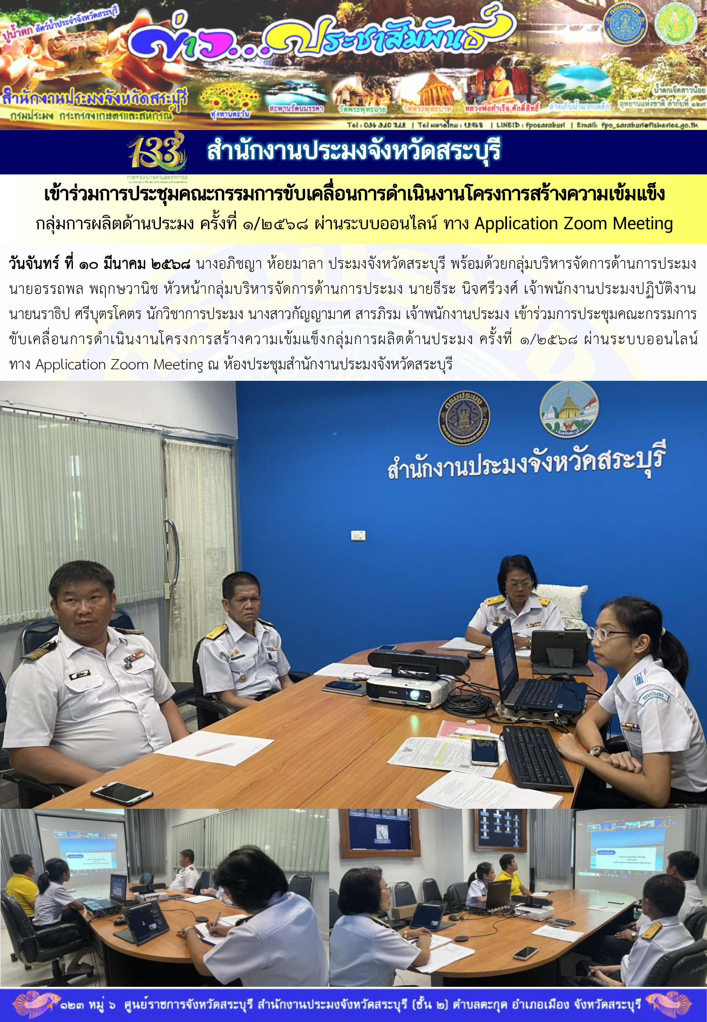 สำนักงานประมงจังหวัดสระบุรี เข้าร่วมการประชุมคณะกรรมการขับเคลื่อนการดำเนินงานโครงการสร้างความเข้มแข็งกลุ่มการผลิตด้านประมง ครั้งที่ 1/2568 ผ่านระบบออนไลน์ ทาง Application Zoom Meeting