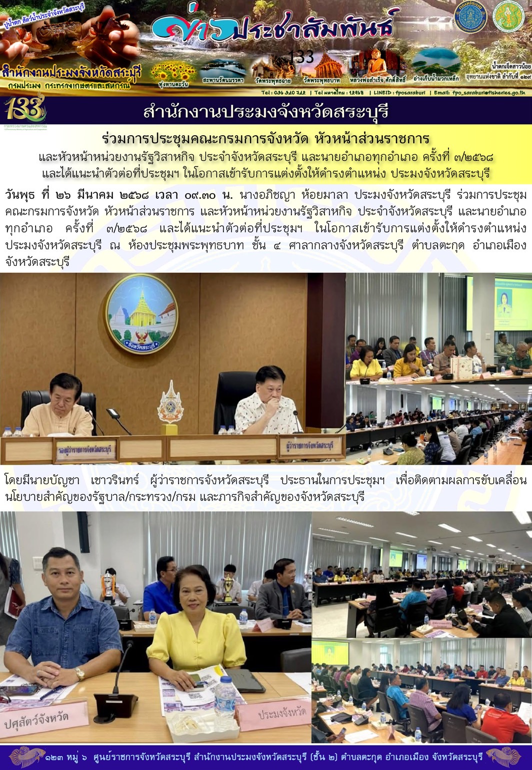 ณ ห้องประชุมพระพุทธบาท ชั้น 4 ศาลากลางจังหวัดสระบุรี ตำบลตะกุด อำเภอเมืองสระบุรี จังหวัดสระบุรี โดยมีนายบัญชา เชาวรินทร์ ผู้ว่าราชการจังหวัดสระบุรี ประธานในการประชุมฯ เพื่อติดตามผลการขับเคลื่อนนโยบายสำคัญของรัฐบาล/กระทรวง/กรม และภารกิจสำคัญของจังหวัดสระบุรี