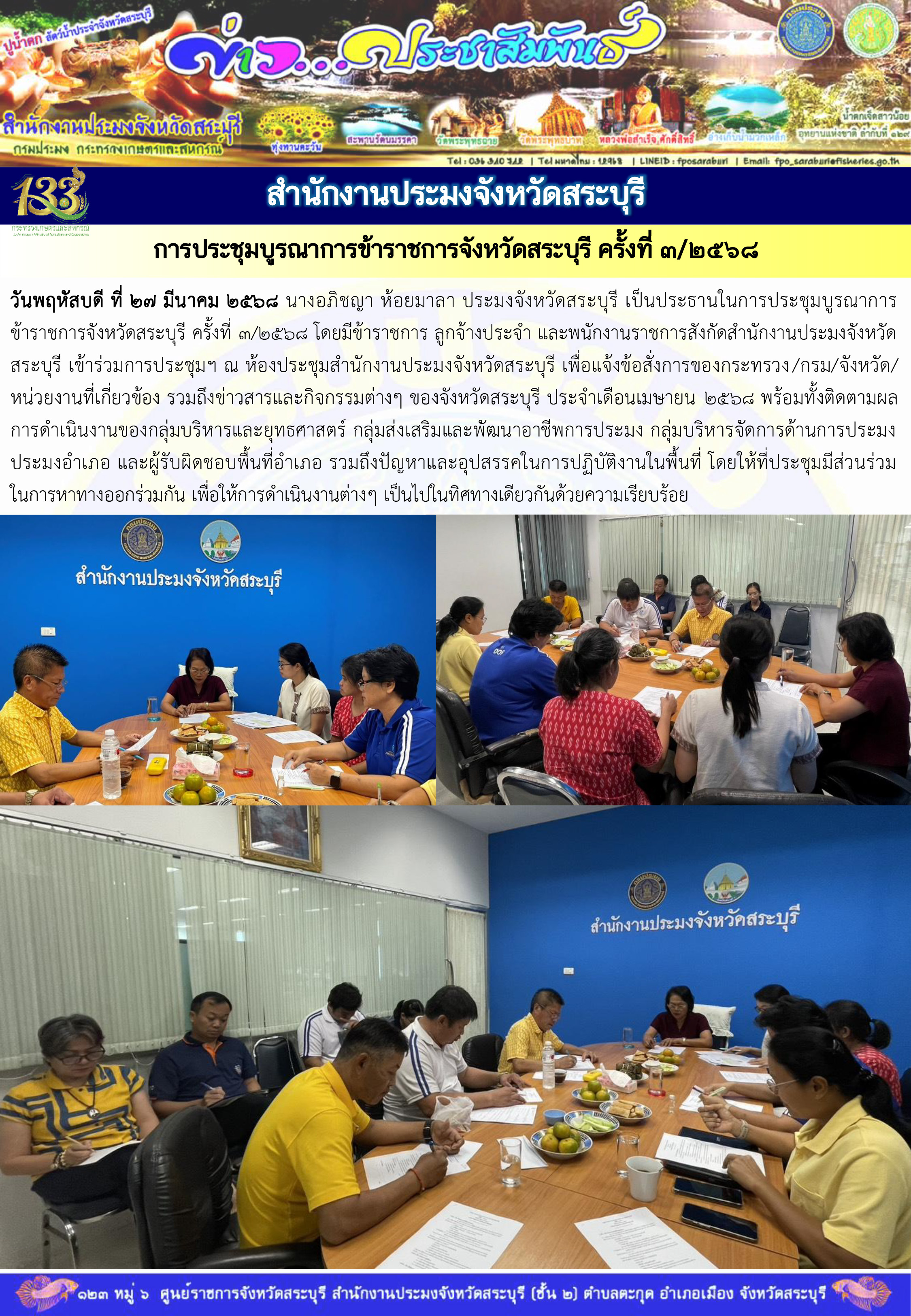 สำนักงานประมงจังหวัดสระบุรี การประชุมบูรณาการข้าราชการจังหวัดสระบุรี ครั้งที่ 3/2568