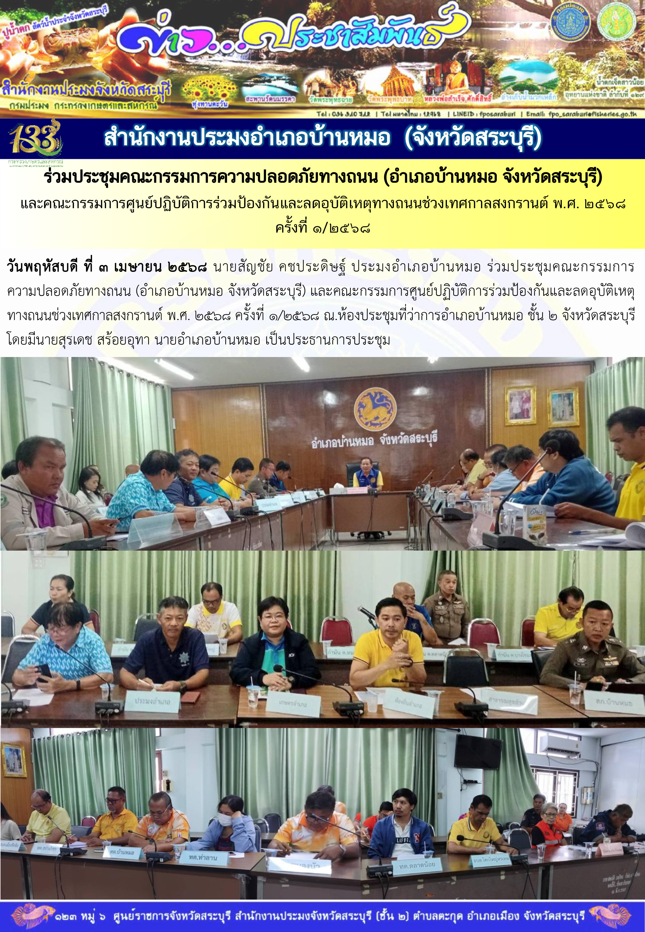 สำนักงานประมงอำเภอบ้านหมอ ร่วมประชุมคณะกรรมการความปลอดภัยทางถนน (อำเภอบ้านหมอ จังหวัดสระบุรี) และคณะกรรมการศูนย์ปฏิบัติการร่วมป้องกันและลดอุบัติเหตุทางถนนช่วงเทศกาลสงกรานต์ พ.ศ. 2568 ครั้งที่ 1/2568