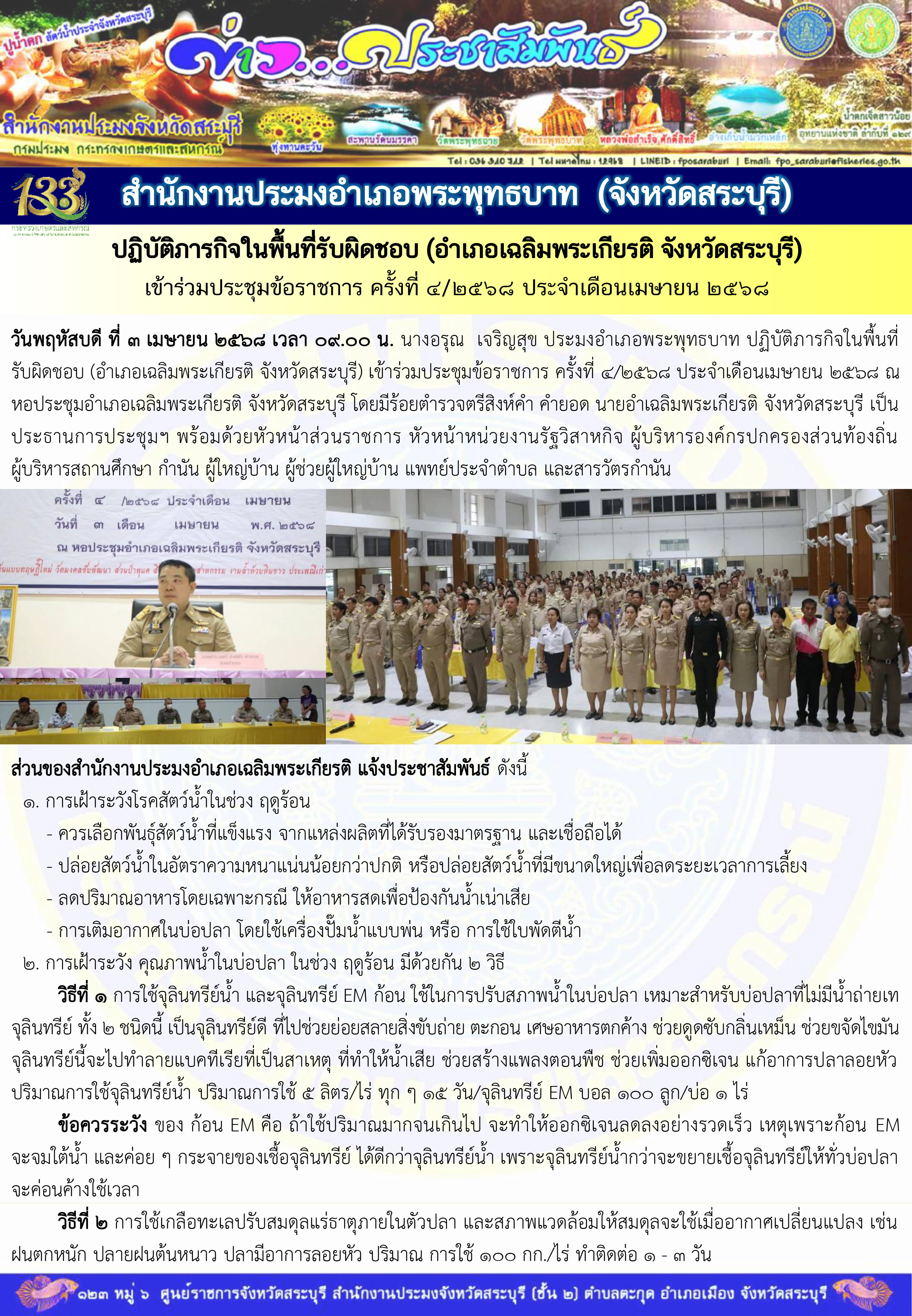ภารกิจประจำวันที่ 3 เมษายน 2568 สำนักงานประมงจังหวัดสระบุรี