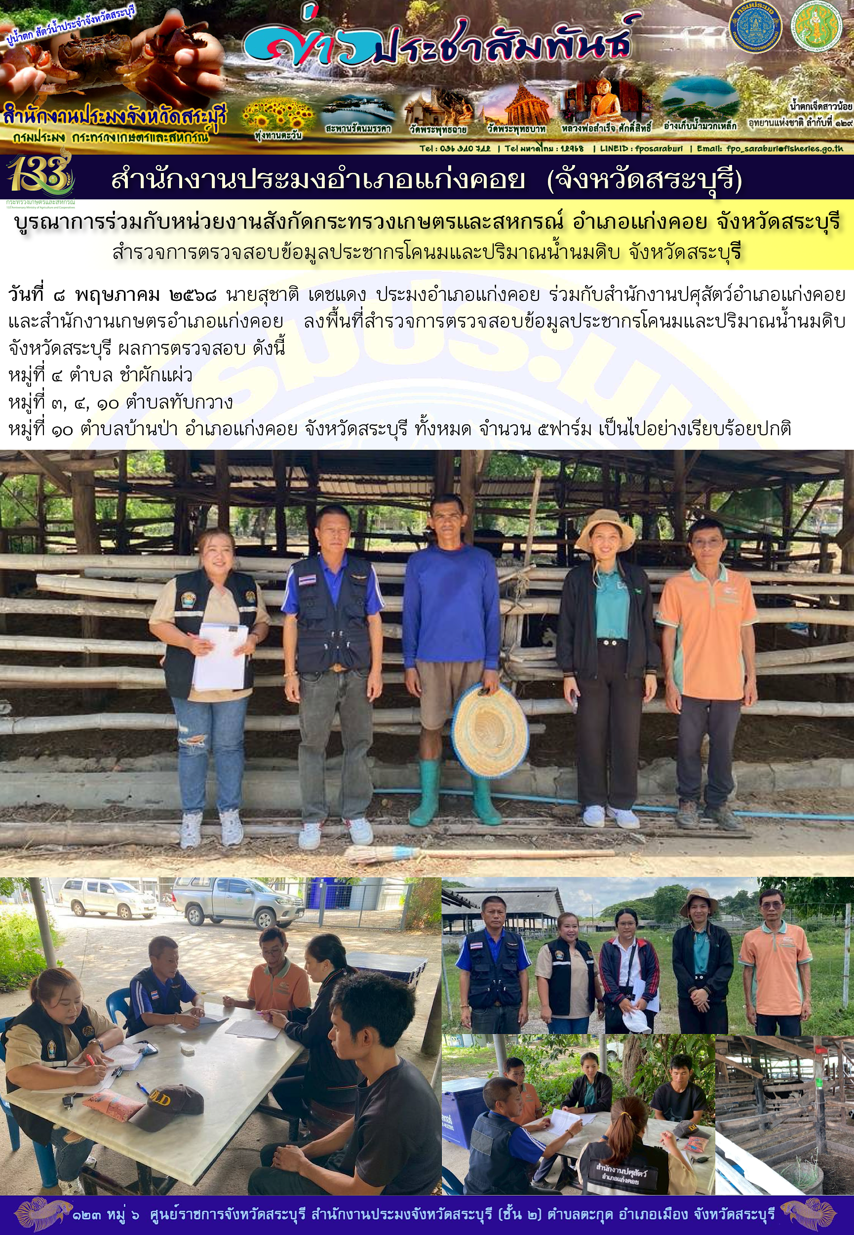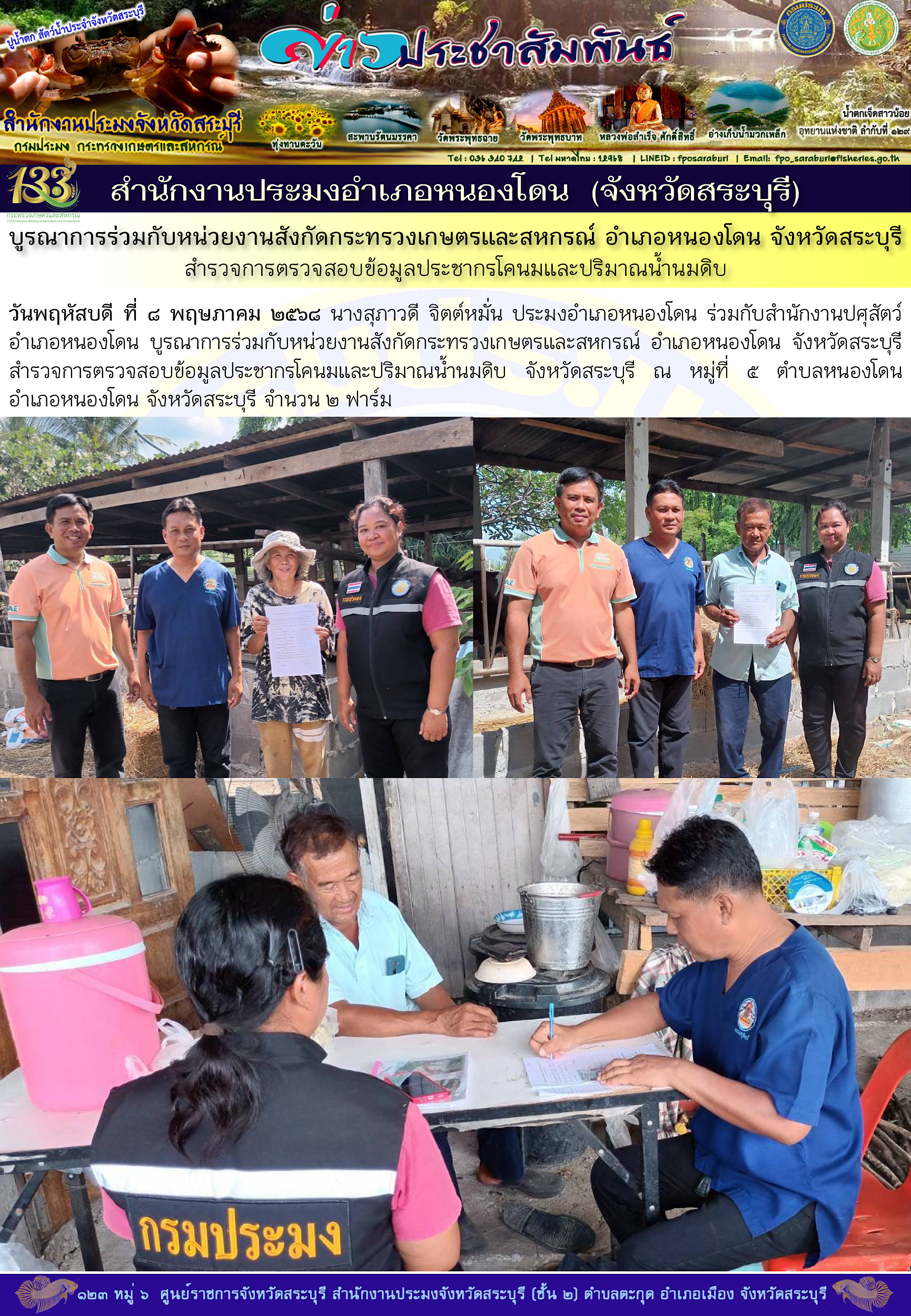ภารกิจประจำวันที่ 8 พฤษภาคม 2568 สำนักงานประมงจังหวัดสระบุรี