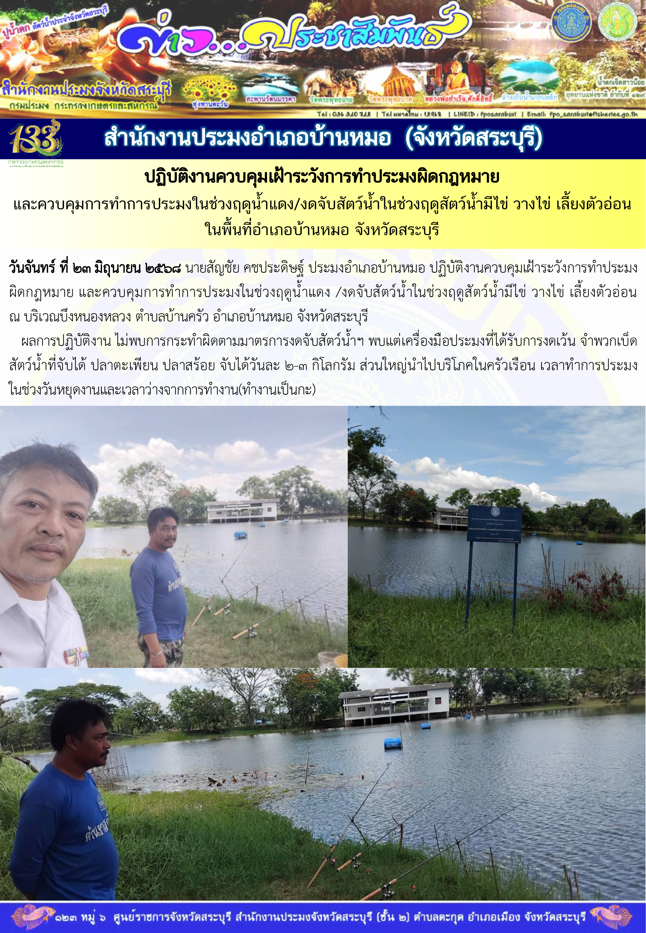 ภารกิจประจำวันที่ 23 มิถุนายน 2568 สำนักงานประมจังหวัดสระบุรี