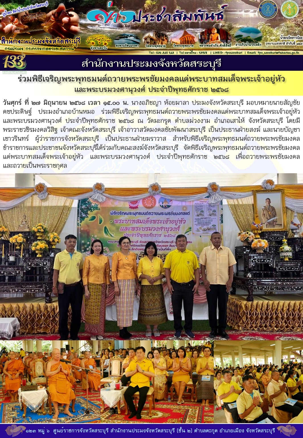 สำนักงานประมงจังหวัดสระบุรี ร่วมพิธีเจริญพระพุทธมนต์ถวายพระพรชัยมงคลแด่พระบาทสมเด็จพระเจ้าอยู่หัว และพระบรมวงศานุวงศ์ ประจำปีพุทธศักราช ๒๕๖๘