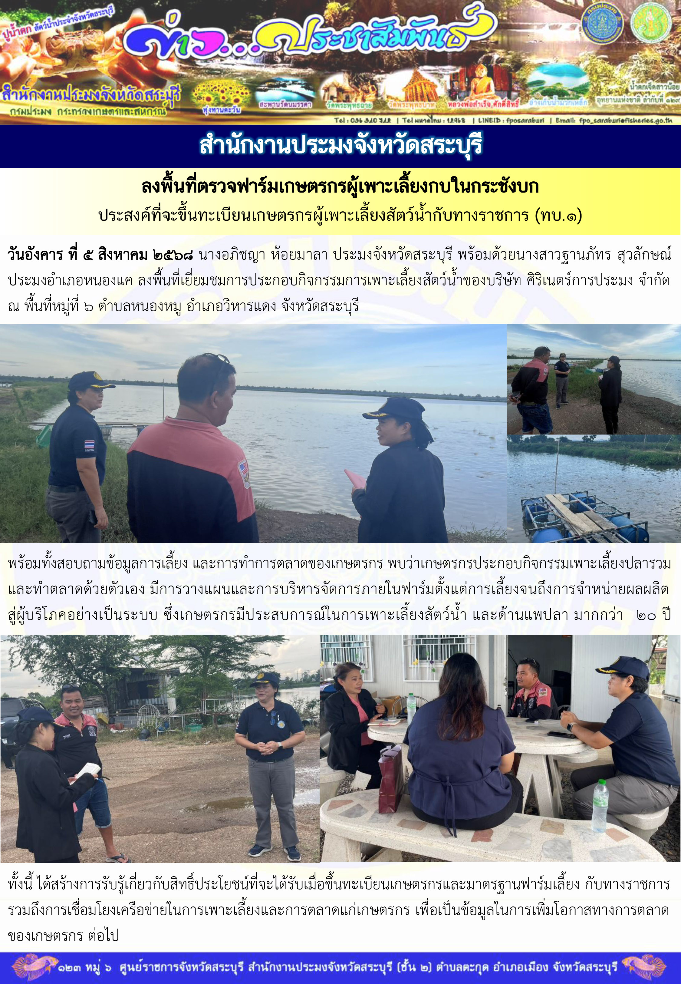 ภารกิจประจำวันที่ 5 สิงหาคม 2568 สำนักงานประมงจังหวัดสระบุรี