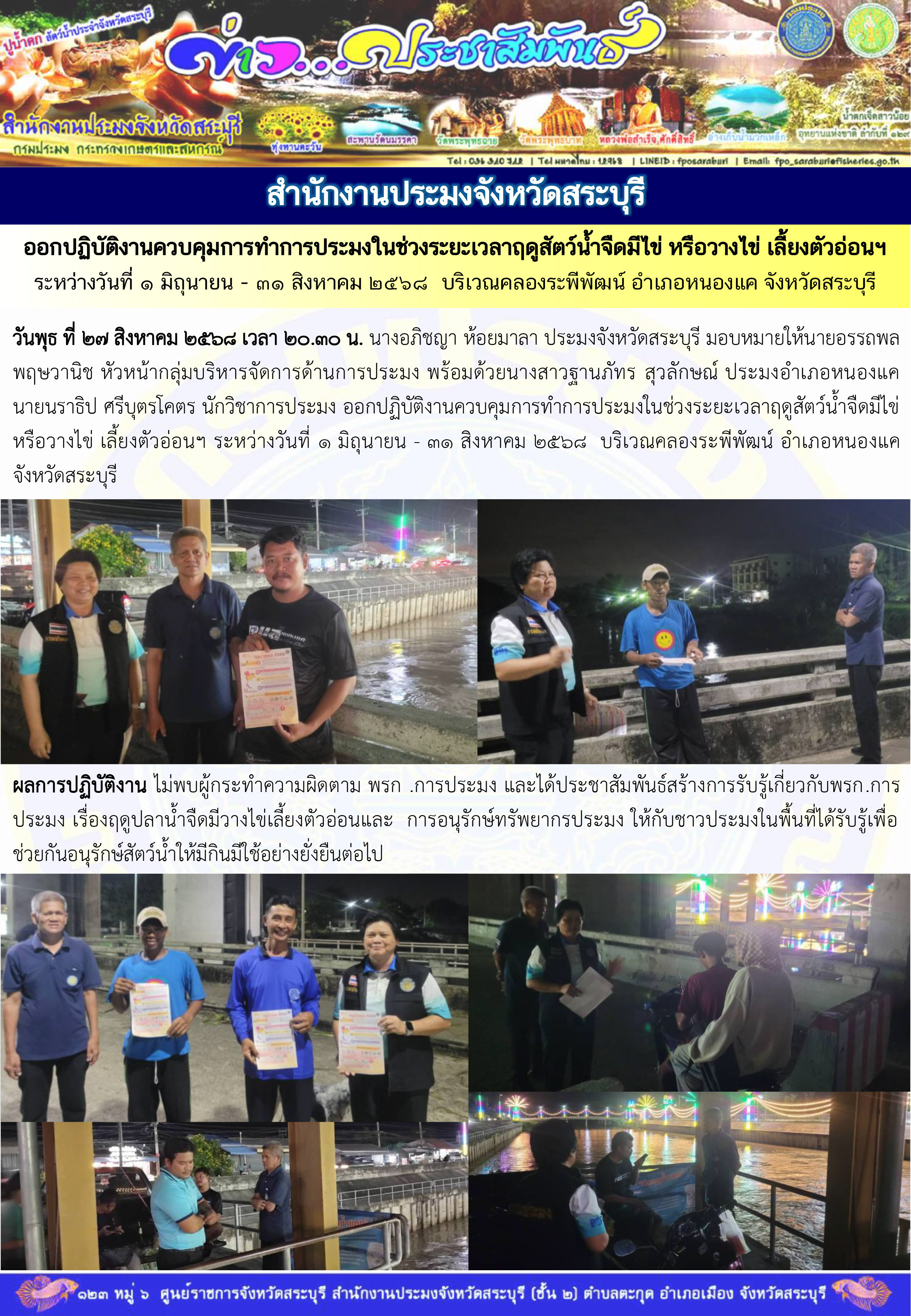 หรืออาจส่งประกาศแจ้งเตือนให้เจ้าของข้อมูลรับทราบโดยตรงตามช่องทางการสื่อสารของสำนักงานประมงจังหวัดสระบุรี