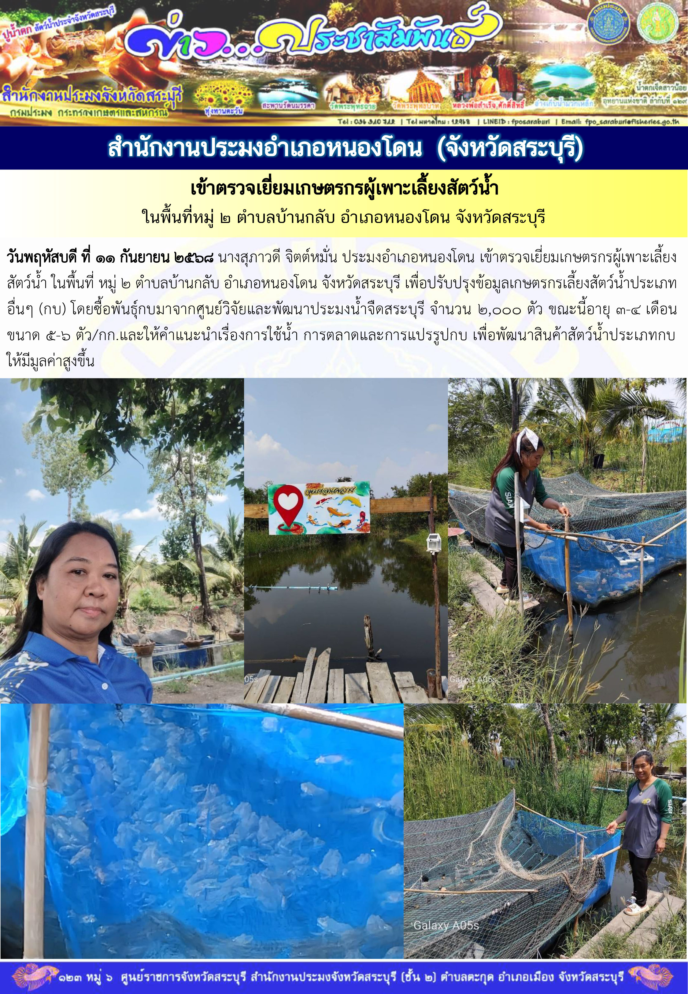 ภารกิจประจำวันที่ 11 กันยายน 2568 สำนักงานประมงจังหวัดสระบุรี