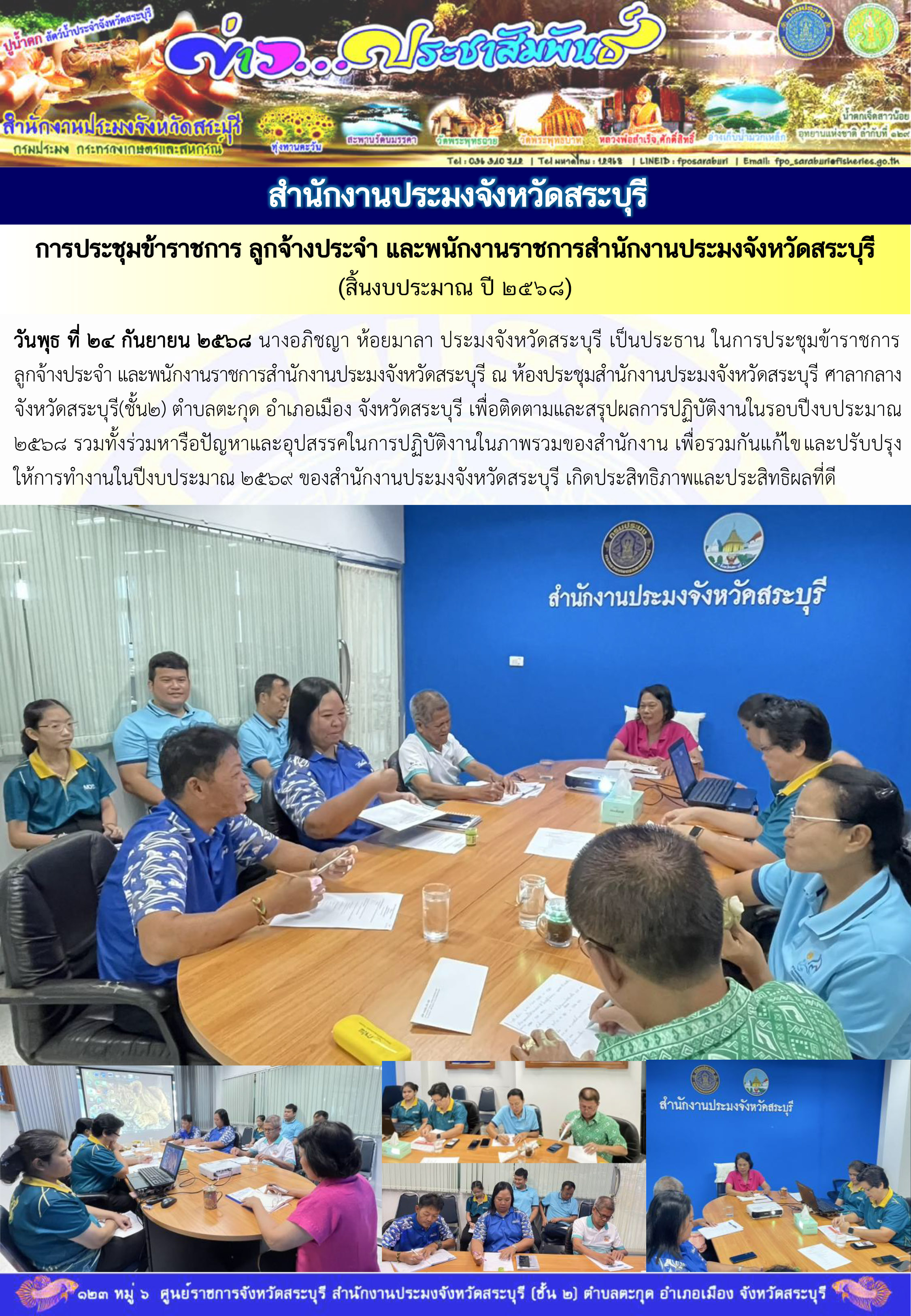 สำนักงานประมงจังหวัดสระบุรี การประชุมข้าราชการ ลูกจ้างประจำ และพนักงานราชการสำนักงานประมงจังหวัดสระบุรี (สิ้นงบประมาณ ปี ๒๕๖๘)