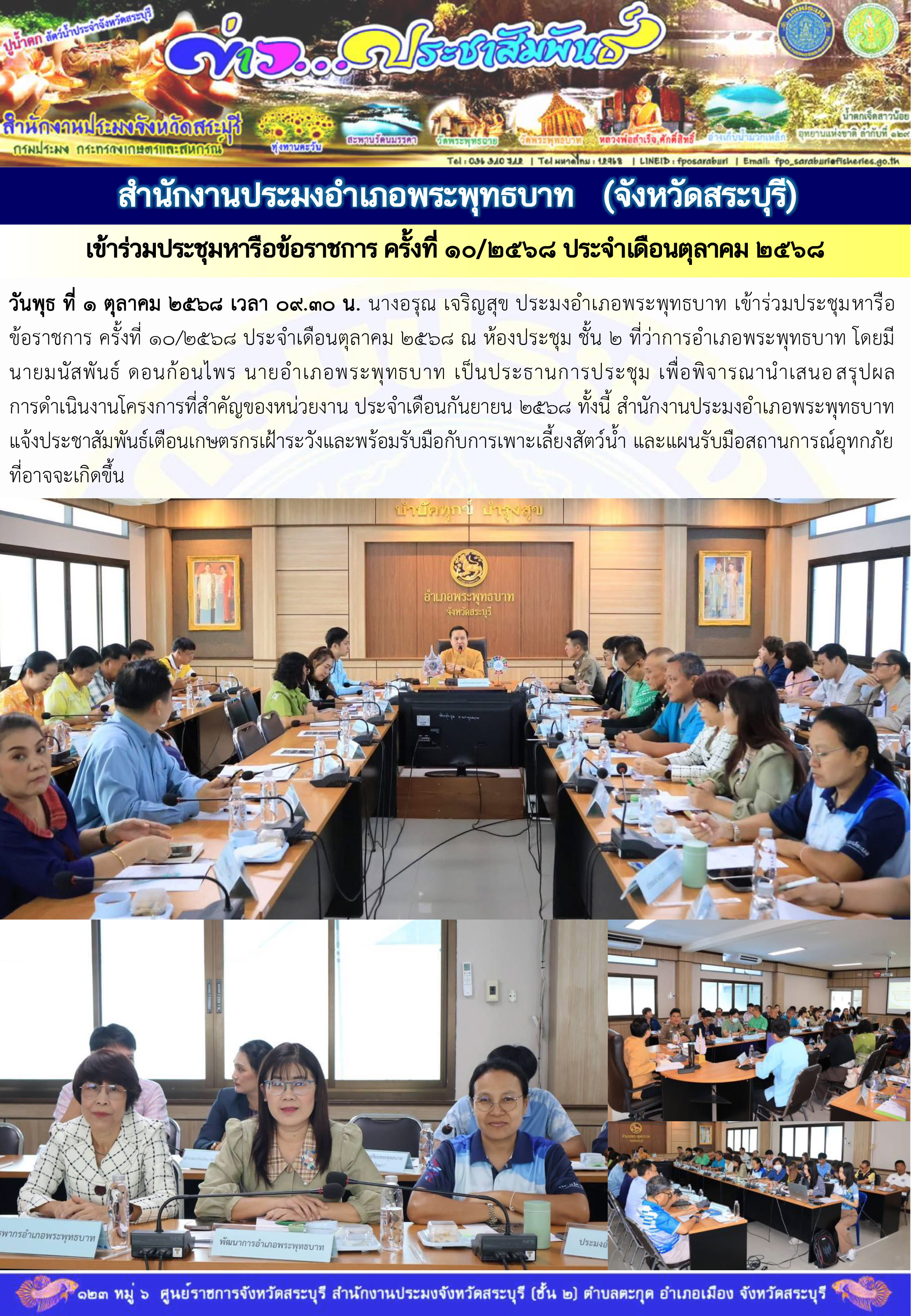 สำนักงานประมงอำเภอพระพุทธบาท เข้าร่วมประชุมหารือข้อราชการ ครั้งที่ ๑๐/๒๕๖๘ ประจำเดือนตุลาคม ๒๕๖๘
