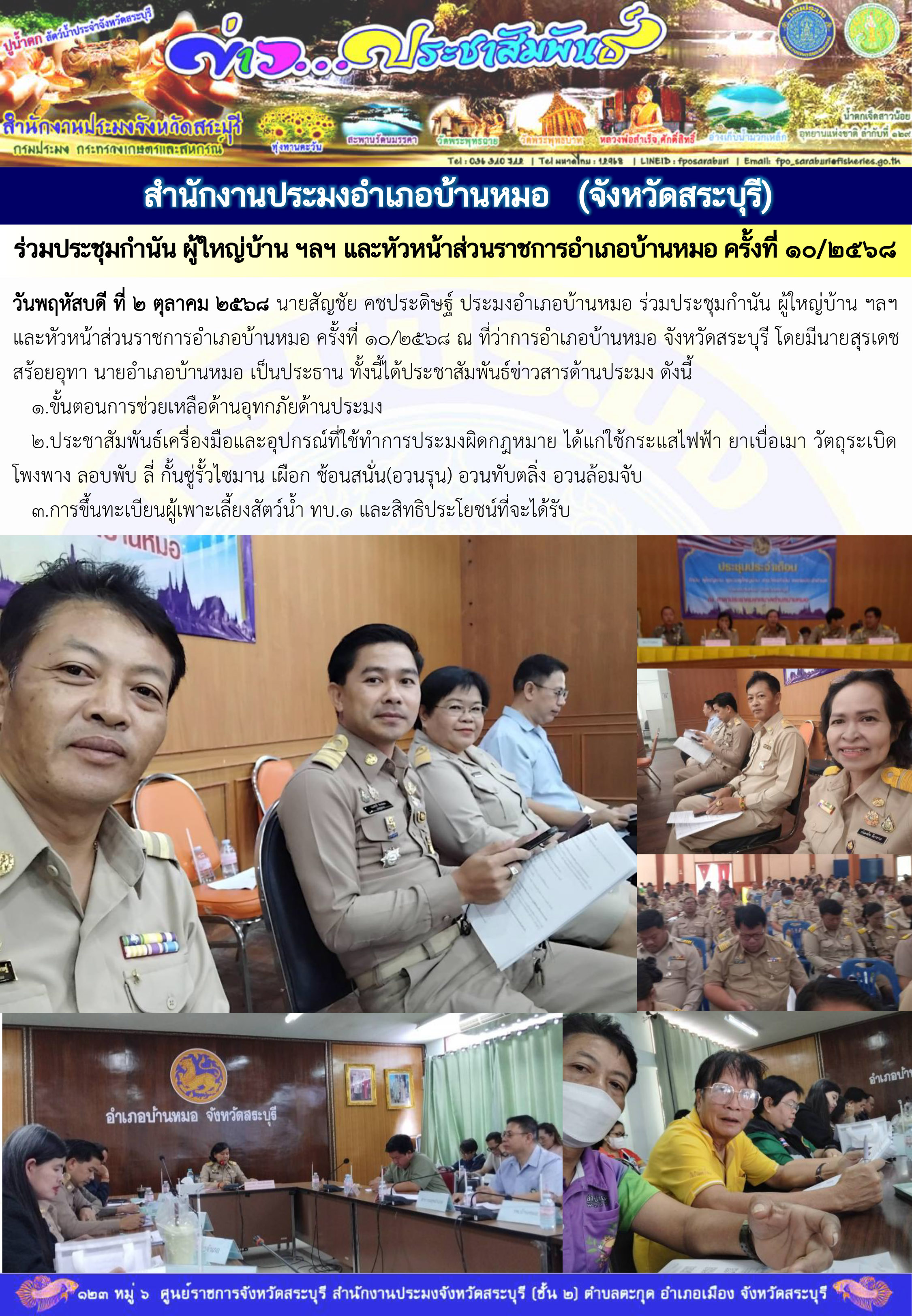 สำนักงานประมงอำเภอบ้านหมอ ร่วมประชุมกำนัน ผู้ใหญ่บ้าน ฯลฯ และหัวหน้าส่วนราชการอำเภอบ้านหมอ ครั้งที่ ๑๐/๒๕๖๘