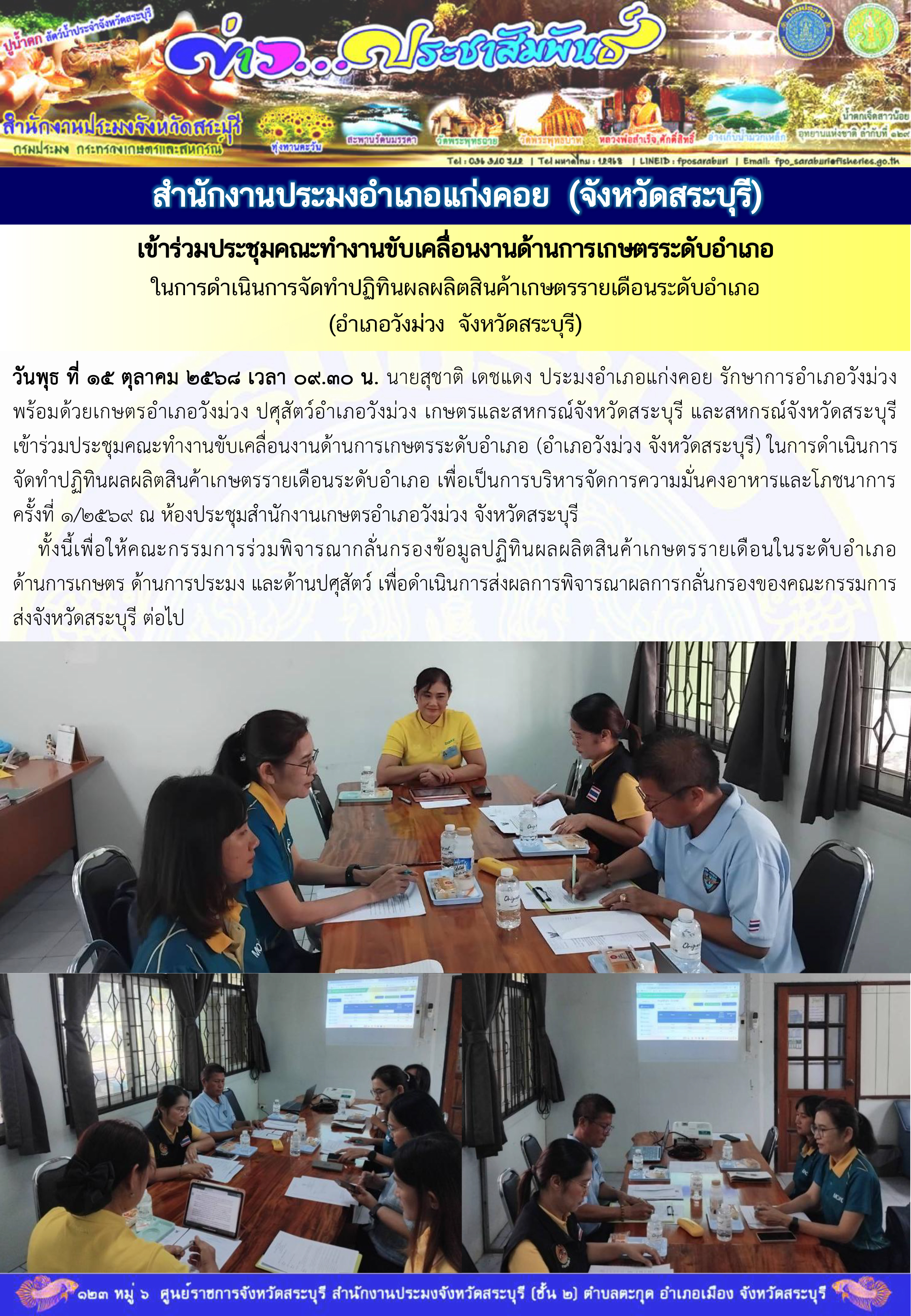 ภารกิจประจำวันที่ 15 ตุลาคม 2568 สำนักงานประมงจังหวัดสระบุรี..คลิก