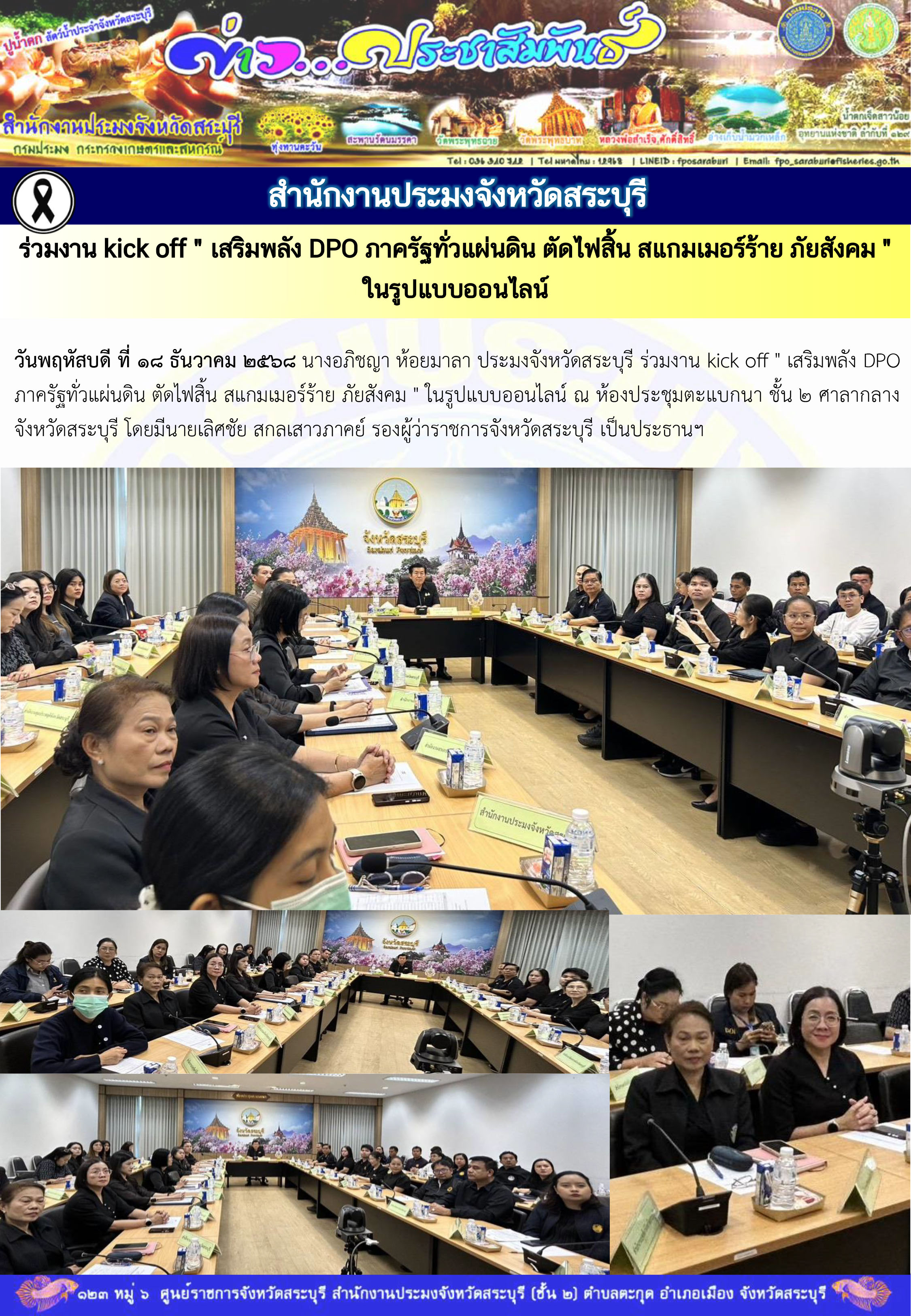สำนักงานประมงจังหวัดสระบุรี ร่วมงาน kick off " เสริมพลัง DPO ภาครัฐทั่วแผ่นดิน ตัดไฟสิ้น สแกมเมอร์ร้าย ภัยสังคม " ในรูปแบบออนไลน์ร่วมงาน kick off " เสริมพลัง DPO ภาครัฐทั่วแผ่นดิน ตัดไฟสิ้น สแกมเมอร์ร้าย ภัยสังคม " ในรูปแบบออนไลน์