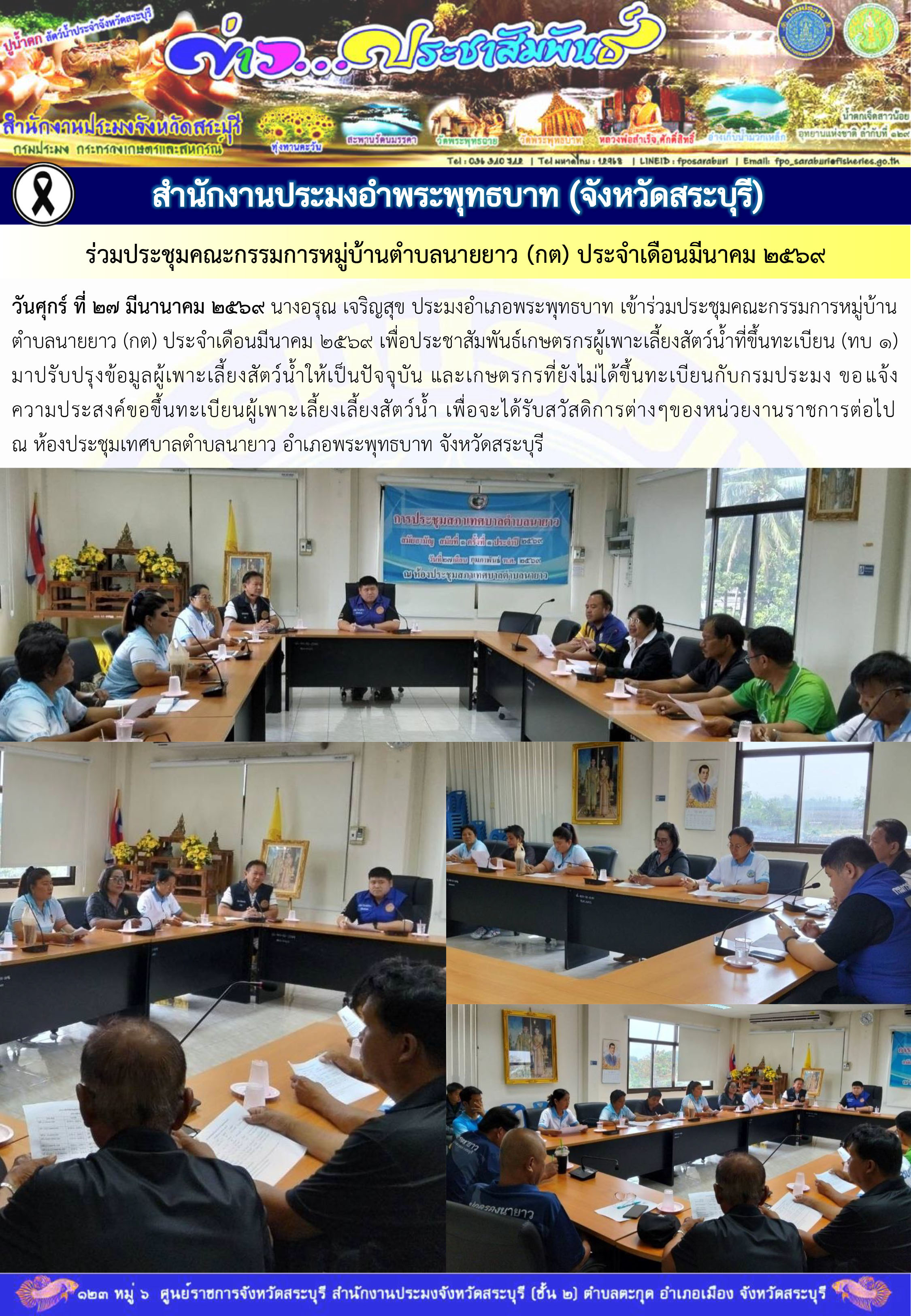 สำนักงานประมงอำเภอพระพุทธบาท ร่วมประชุมคณะกรรมการหมู่บ้านตำบลนายยาว (กต) ประจำเดือนมีนาคม 2569