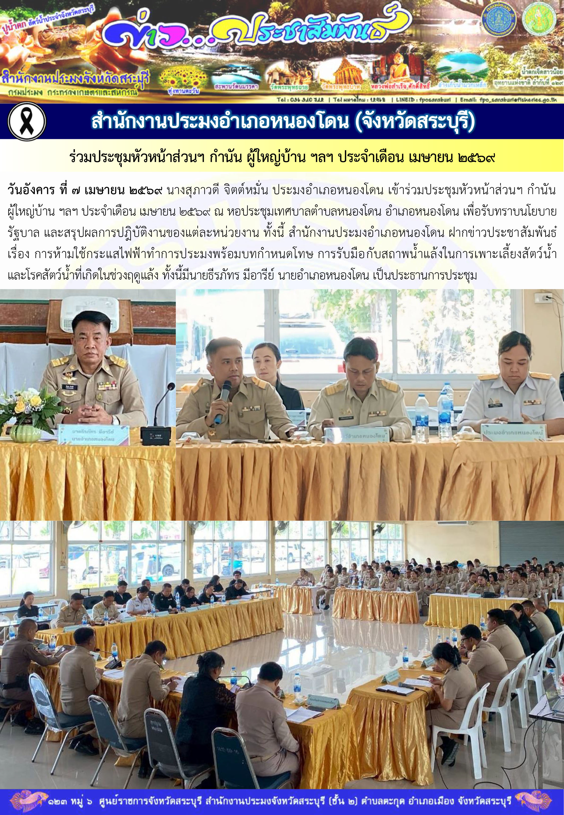 สำนักงานประมงอำเภอหนองโดน ร่วมประชุมหัวหน้าส่วนฯ กำนัน ผู้ใหญ่บ้าน ฯลฯ ประจำเดือน เมษายน 2569