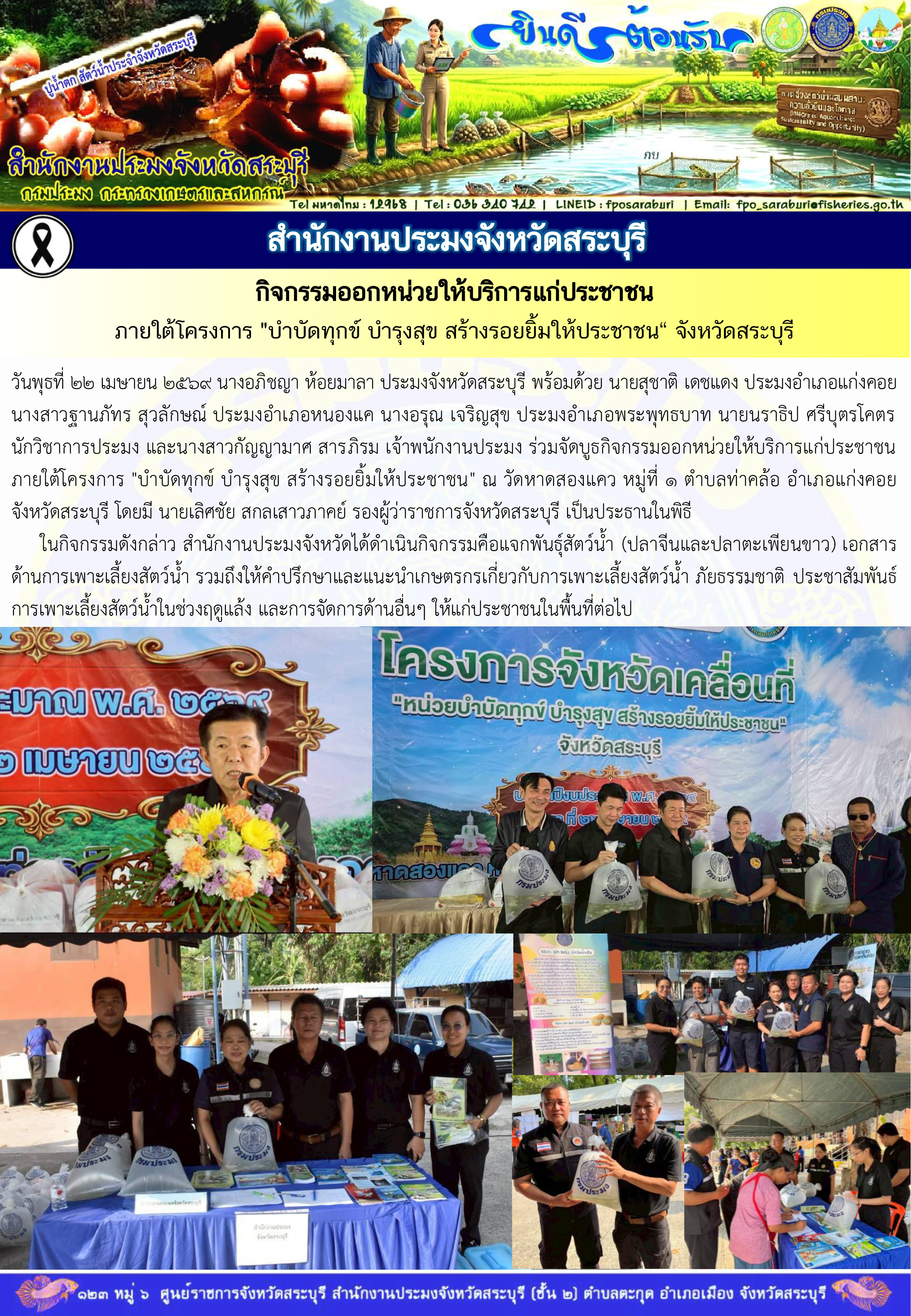 ภารกิจประจำวันที่ 22 เมษายน 2569 สำนักงานประมงจังหวัดสระบุรี