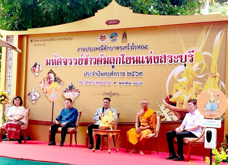 18 กันยายน 2563 เวลา 10.00 น. นางสาวรัตนา ใจเย็น ประมงจังหวัดสระบุรี มอบหมายนางสาวนำพร เทพสุวรรณ หัวหน้ากลุ่มบริหารและยุทธศาสตร์ เข้าร่วมงานแถลงข่าวงานประเพณีตักบาตรข้าวต้มลูกโยน จังหวัดสระบุรี ประจำปี 2563 ณ วัดพระพุทธฉาย ตำบลหนองปลาไหล อำเภอเมือง จังหวัดสระบุรี โดยมีนายแมนรัตน์ รัตนสุคนธ์ ผู้ว่าราชการจังหวัดสระบุรี พระราชธีราภรณ์ รองเจ้าคณะจังหวัดสระบุรี วัดพระพุทธฉาย ปลัดองค์การบริหารส่วนจังหวัด วัฒนธรรมจังหวัดสระบุรี และนายแพทย์สาธารณสุขจังหวัดสระบุรี ขึ้นเวทีแถลงข่าวประชาสัมพันธ์งานฯ ในครั้งนี้