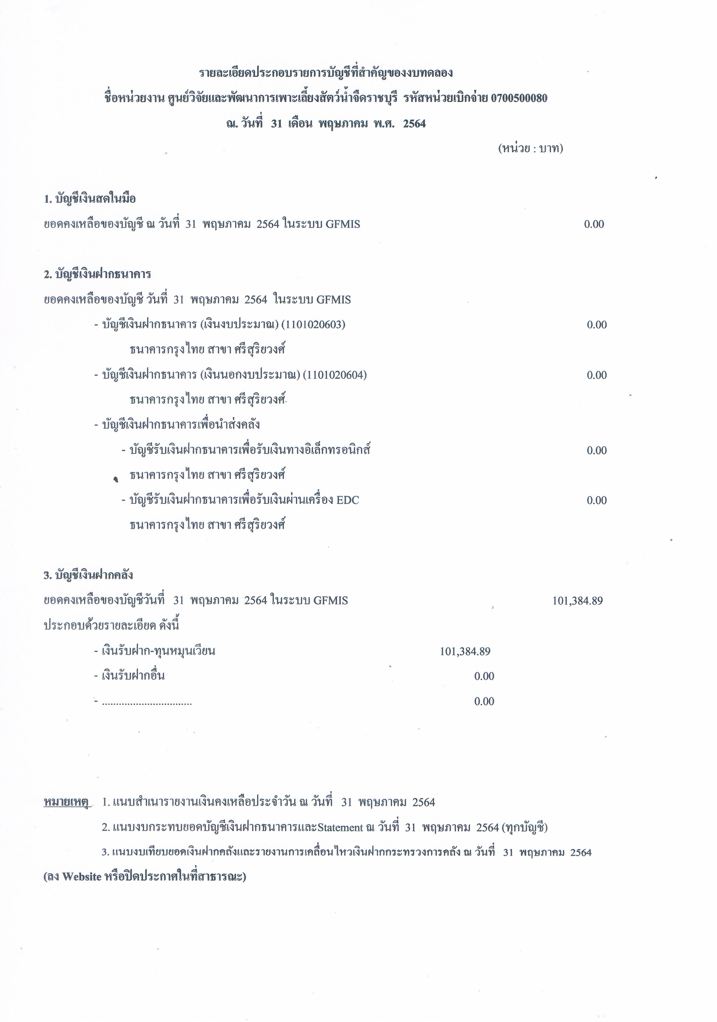รายงานรายละเอียดประกอบรายการบัญชีที่สำคัญของงบทดลอง ณ วันที่ 31 พฤษภาคม พ.ศ.2564