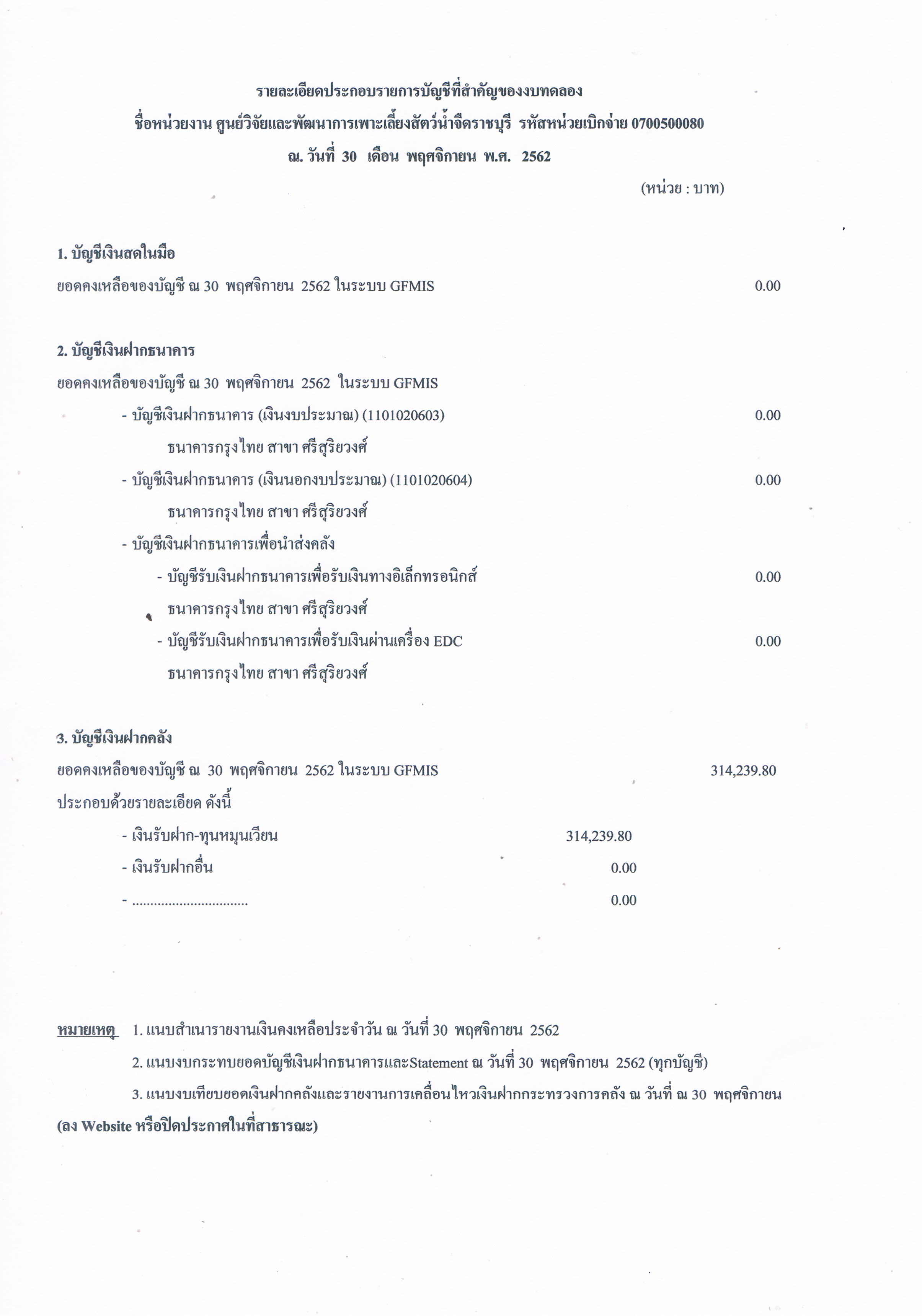 รายละเอียดประกอบรายการบัญชีที่สำคัญของงบทดลอง ณ วันที่ 30 พฤศจิกายน 2562