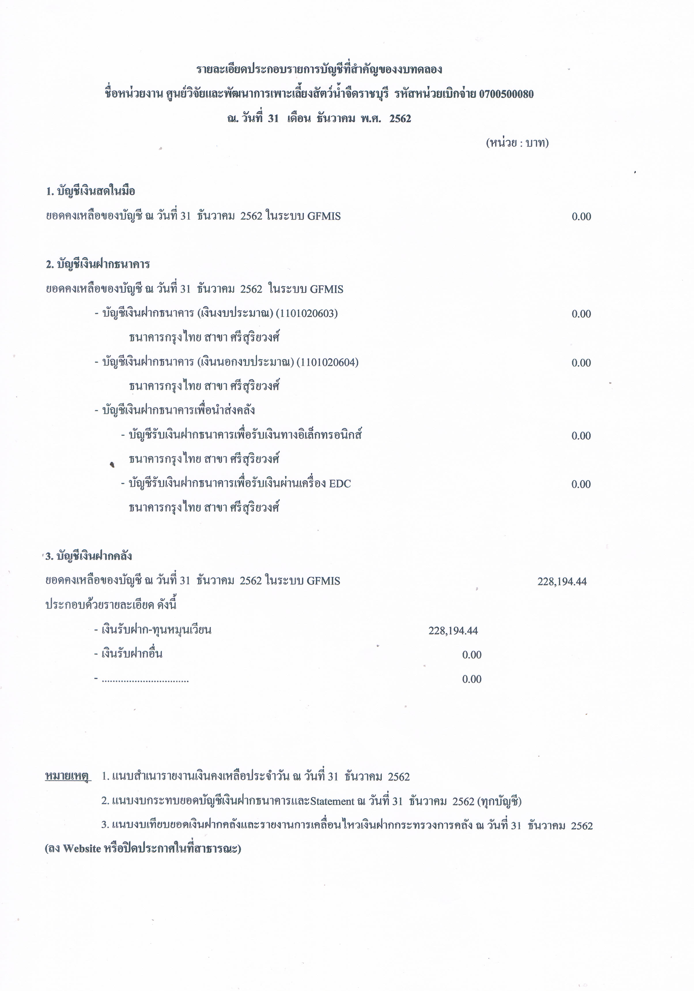 รายละเอียดประกอบรายการบัญชีที่สำคัญของงบทดลอง ณ วันที่ 31 ธันวาคม 2562