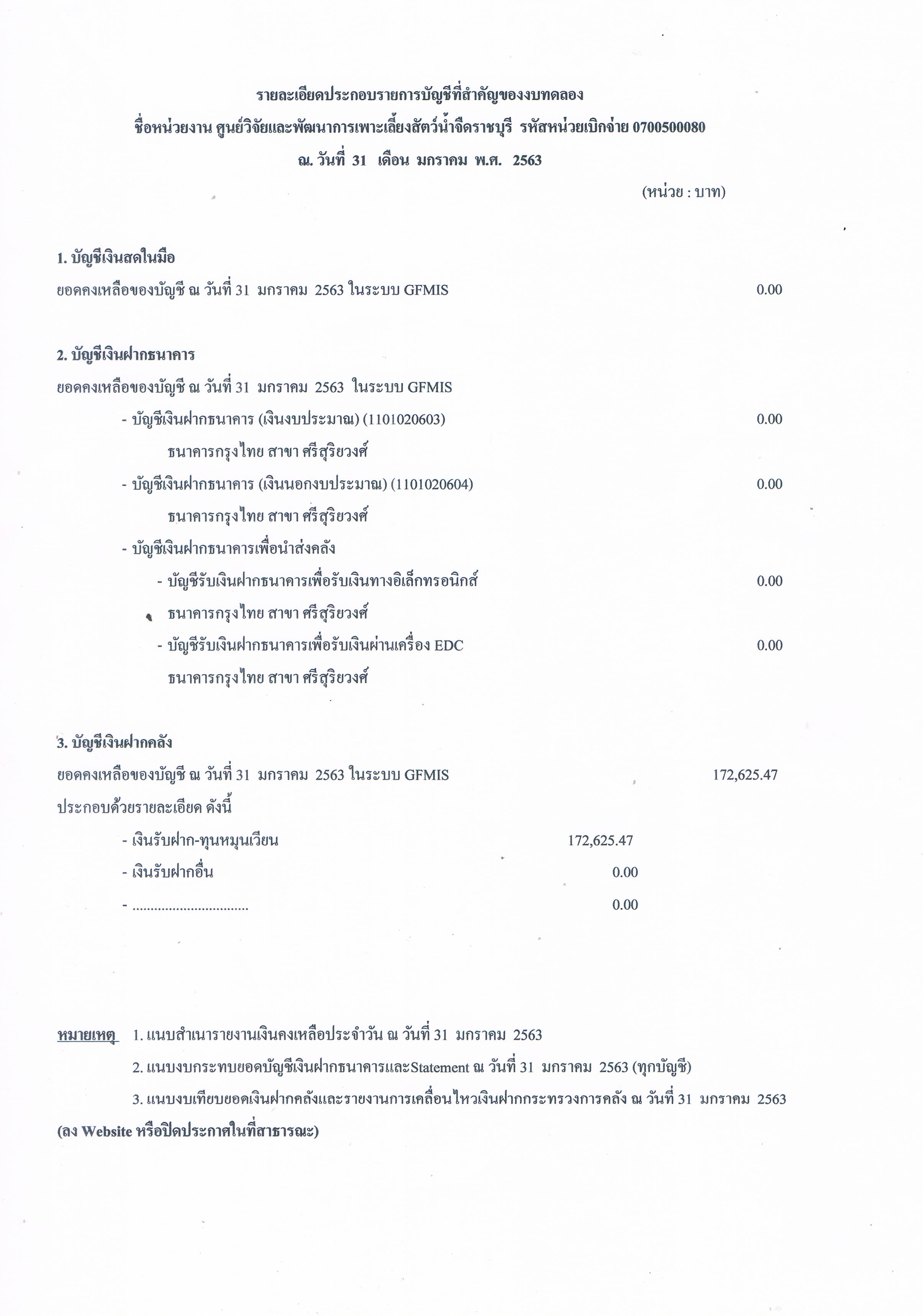 รายละเอียดประกอบรายการบัญชีที่สำคัญของงบทดลอง ณ วันที่ 31 มกราคม 2563