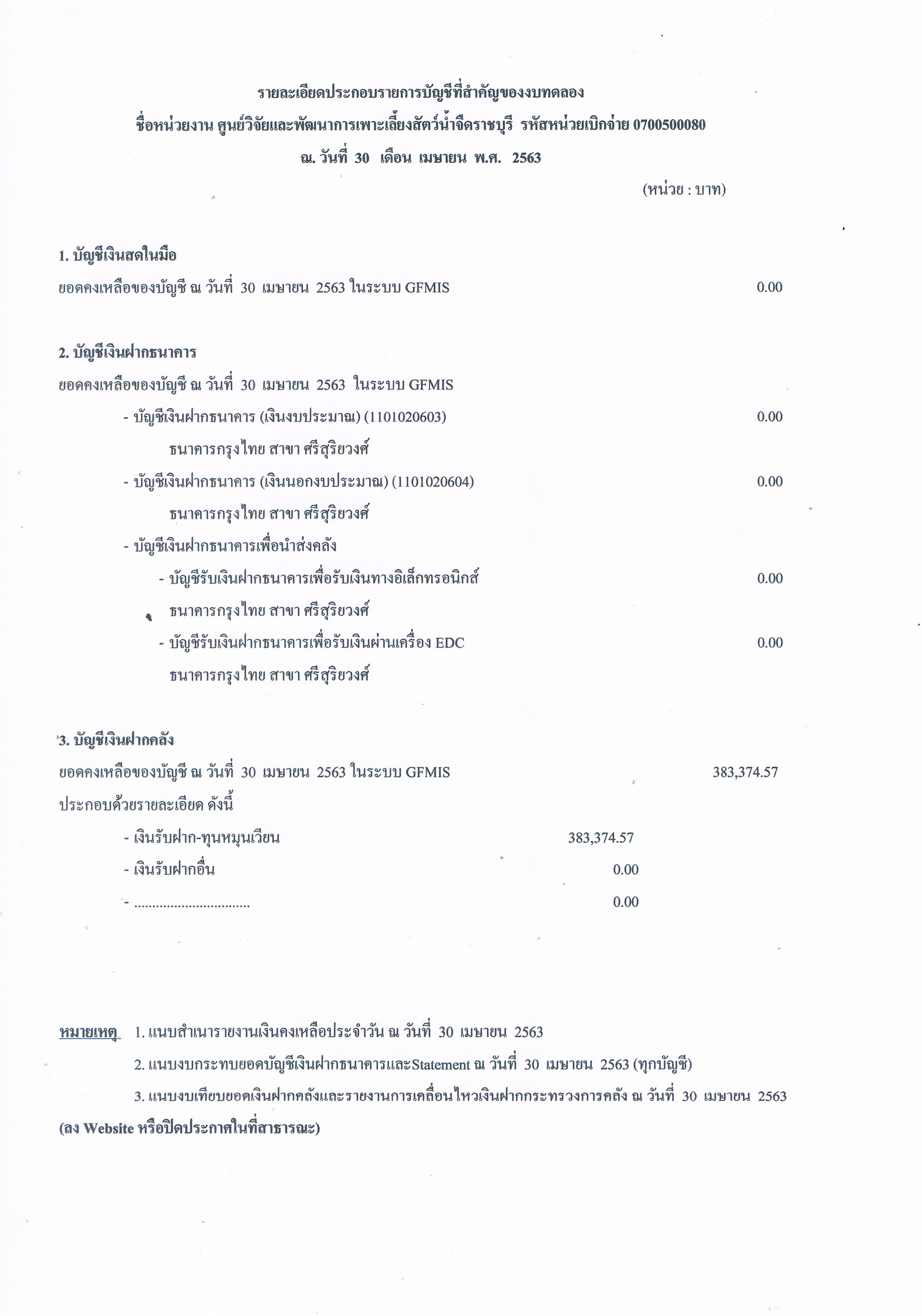 รายละเอียดประกอบรายการบัญชีที่สำคัญของงบทดลอง ณ วันที่ 30 เมษายน 2563