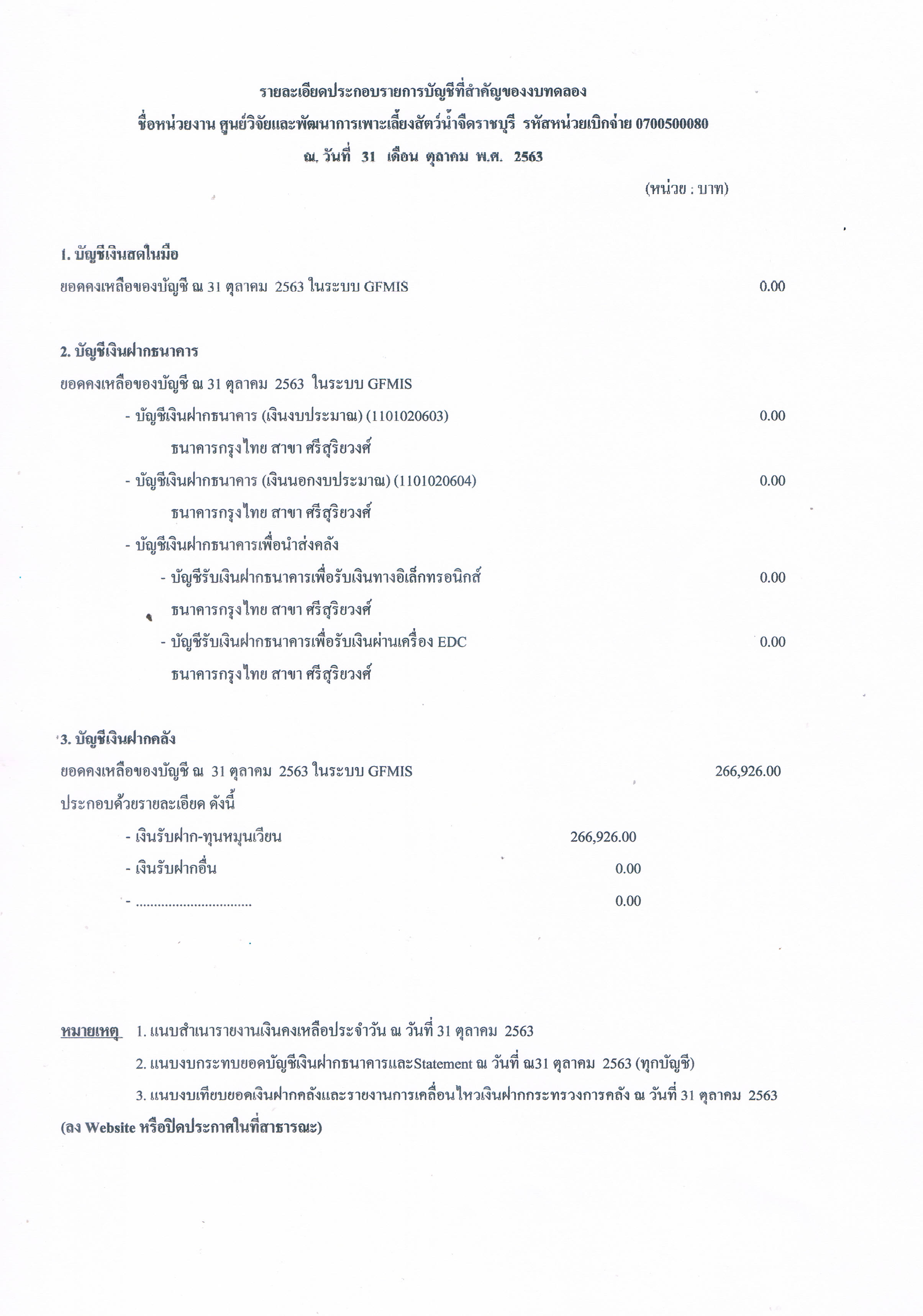 รายละเอียดประกอบรายการบัญชีที่สำคัญของงบทดลอง ณ วันที่ 31 ตุลาคม 2563
