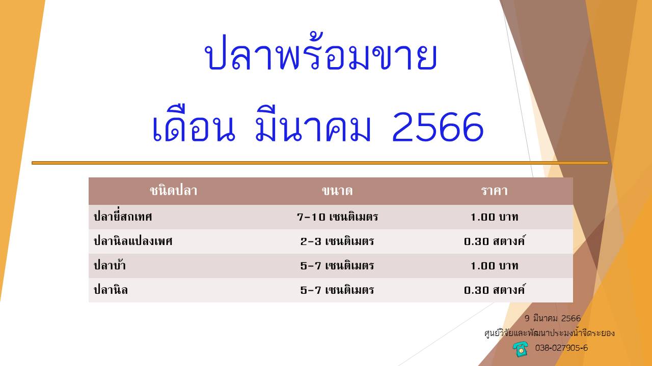ปลาพร้อมขาย วันที่ 9 มีนาคม 2566