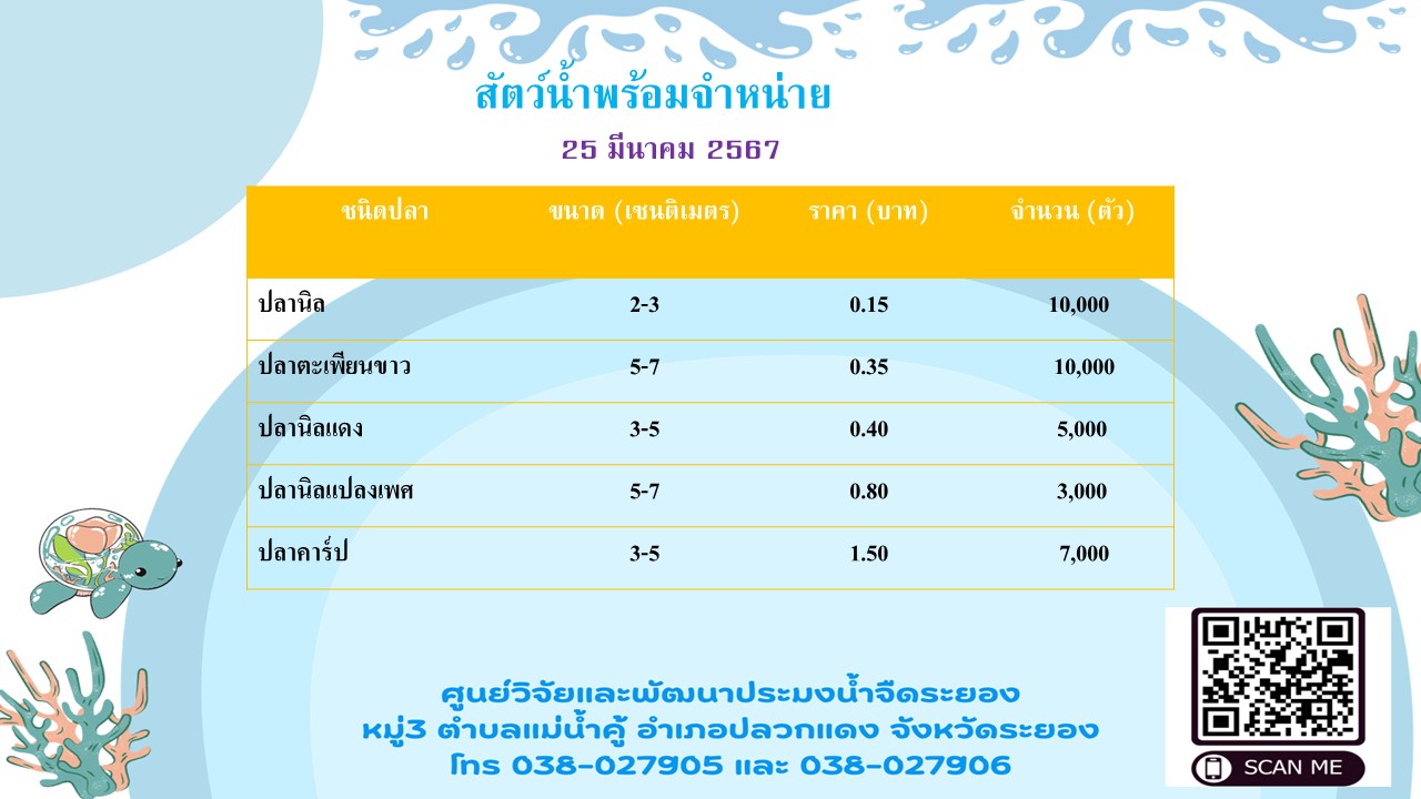 สัตว์น้ำพร้อมจำหน่าย วันที่ 25 มีนาคม 2567