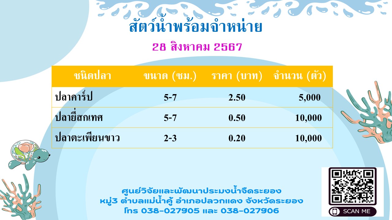 สัตว์น้ำพร้อมจำหน่าย วันที่ 28 สิงหาคม 2567
