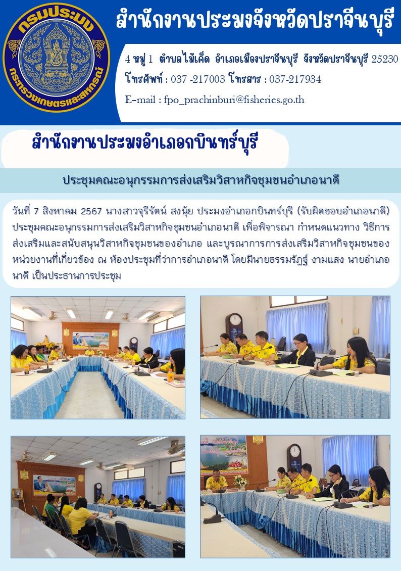 ข่าวประชาสัมพันธ์ สำนักงานประมงอำเภอกบินทร์บุรี ประชุมคณะอนุกรรมการส่งเสริมวิสาหกิจชุมชนอำเภอนาดี