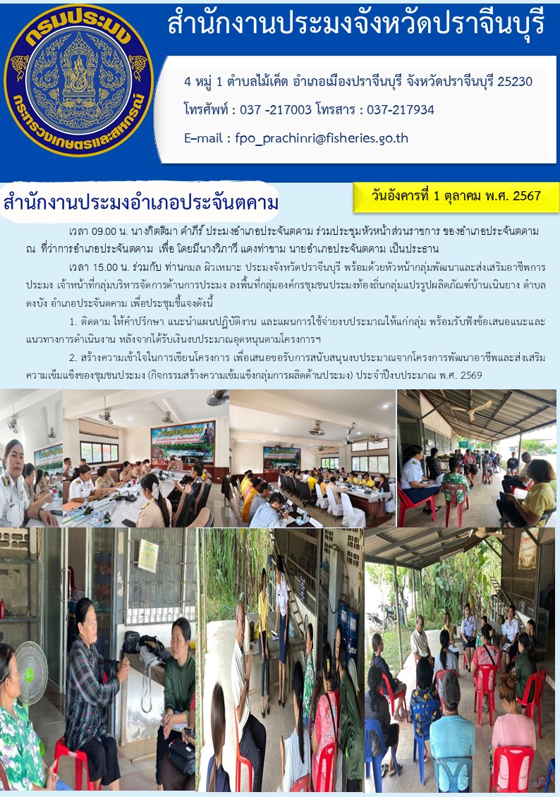 ข่าวประชาสัมพันธ์ สำนักงานประมงอำเภอประจันตคาม ร่วมประชุมหัวหน้าส่วนราชการ ของอำเภอประจันตคาม