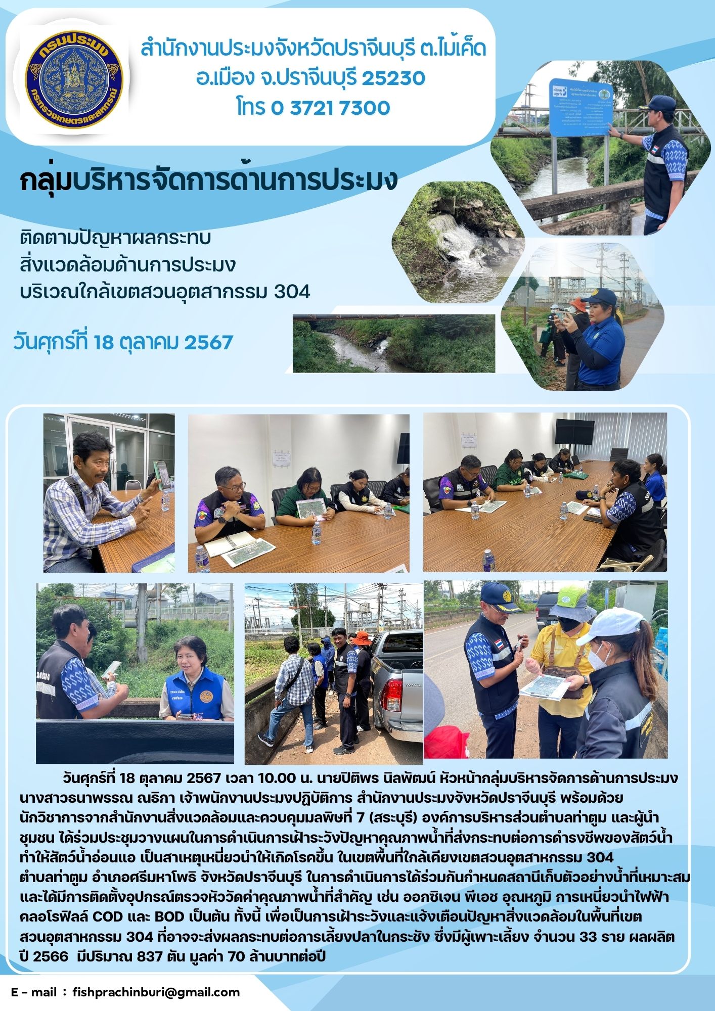 ข่าวประชาสัมพันธ์ กลุ่มบริหารจัดการด้านการประมง ได้ร่วมประชุมวางแผนในการดำเนินการเฝ้าระวังปัญหาคุณภาพน้ำที่ส่งกระทบต่อการดำรงชีพของสัตว์น้ำ