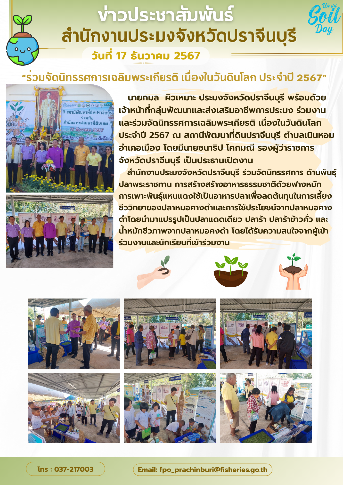 ข่าวประชาสัมพันธ์ "ร่วมจัดนิทรรศการเฉลิมพระเกียรติ เนื่องในวันดินโลก ประจำปี 2567"