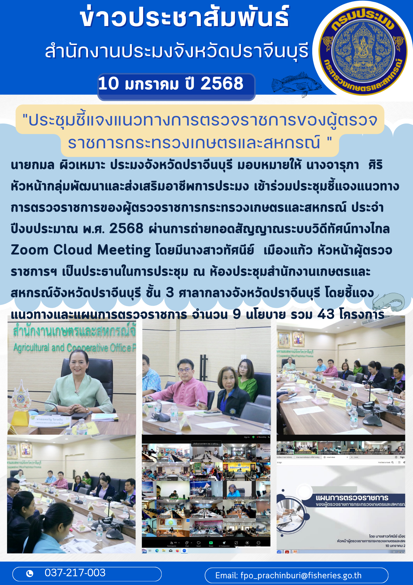 ข่าวประชาสัมพันธ์ "ประชุมชี้แจงแนวทางการตรวจราชการของผู้ตรวจ ราชการกระทรวงเกษตรและสหกรณ์ "
