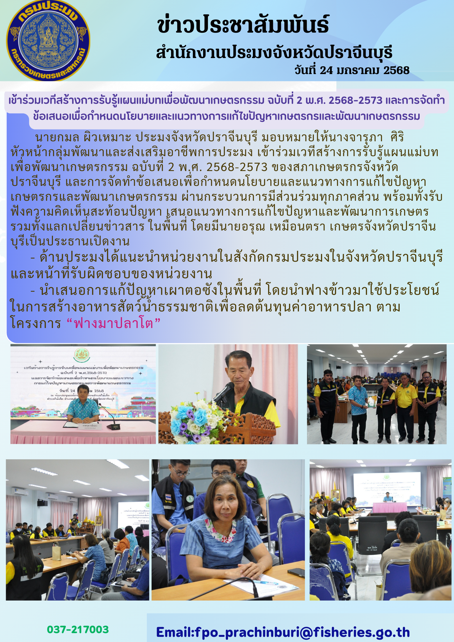 ข่าวประชาสัมพันธ์ เข้าร่วมเวทีสร้างการรับรู้แผนแม่บทเพื่อพัฒนาเกษตรกรรม ฉบับที่ 2 พ.ศ. 2568-2573 และการจัดทํา ข้อเสนอเพื่อกำหนดนโยบายและแนวทางการแก้ไขปัญหาเกษตรกรและพัฒนาเกษตรกรรม