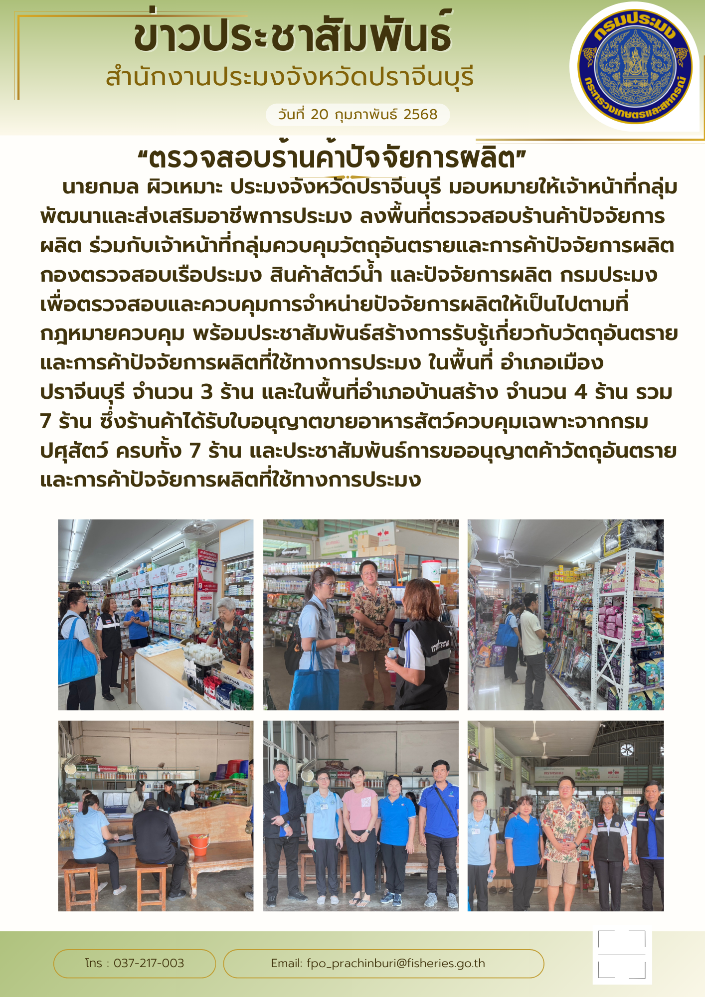 ข่าวประชาสัมพันธ์ ลงพื้นที่ตรวจสอบร้านค้าปัจจัยการ ผลิต ร่วมกับเจ้าหน้าที่กลุ่มควบคุมวัตถุอันตรายและการค้าปัจจัยการผลิต