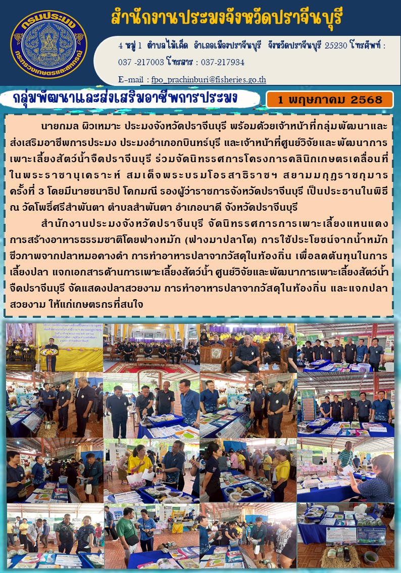 ข่าวประชาสัมพันธ์ กลุ่มพัฒนาและส่งเสริมอาชีพการประมง ร่วมจัดนิทรรศการโครงการคลินิกเกษตรเคลื่อนที่ ในพระราชานุเคราะห์ สมเด็จพระบรมโอรสาธิราชฯ สยามมกุฎราชกุมาร ครั้งที่ 3