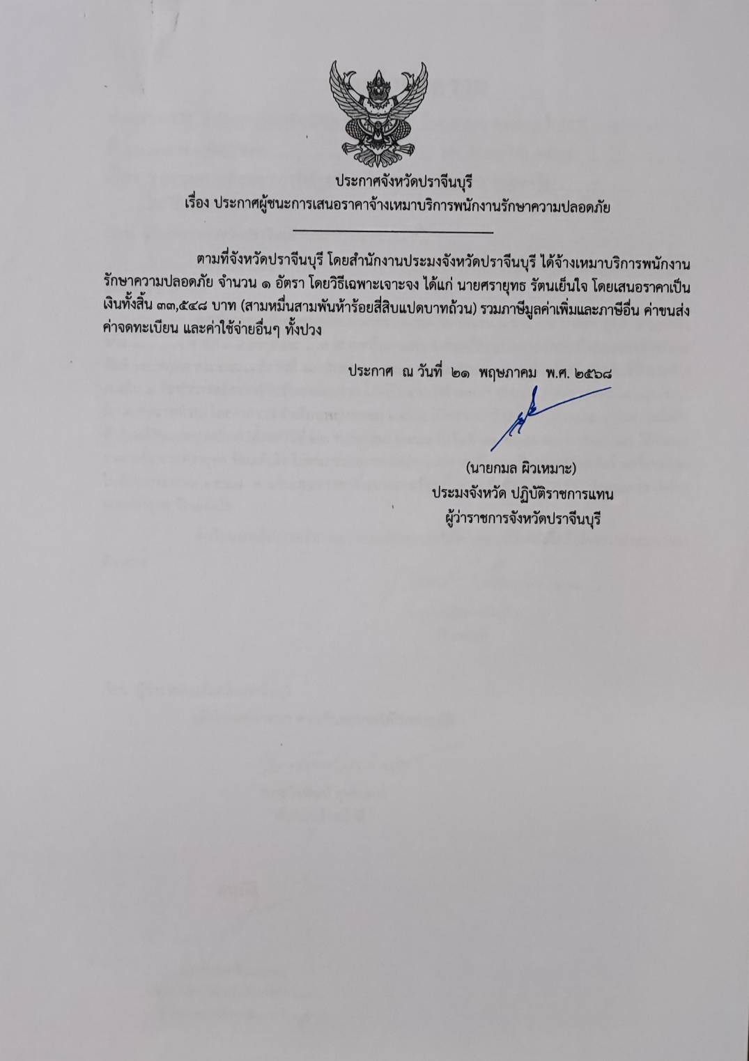 ประกาศผู้ชนะการเสนอราคาจ้างเหมาบริการพนักงานรักษาความปลอดภัย