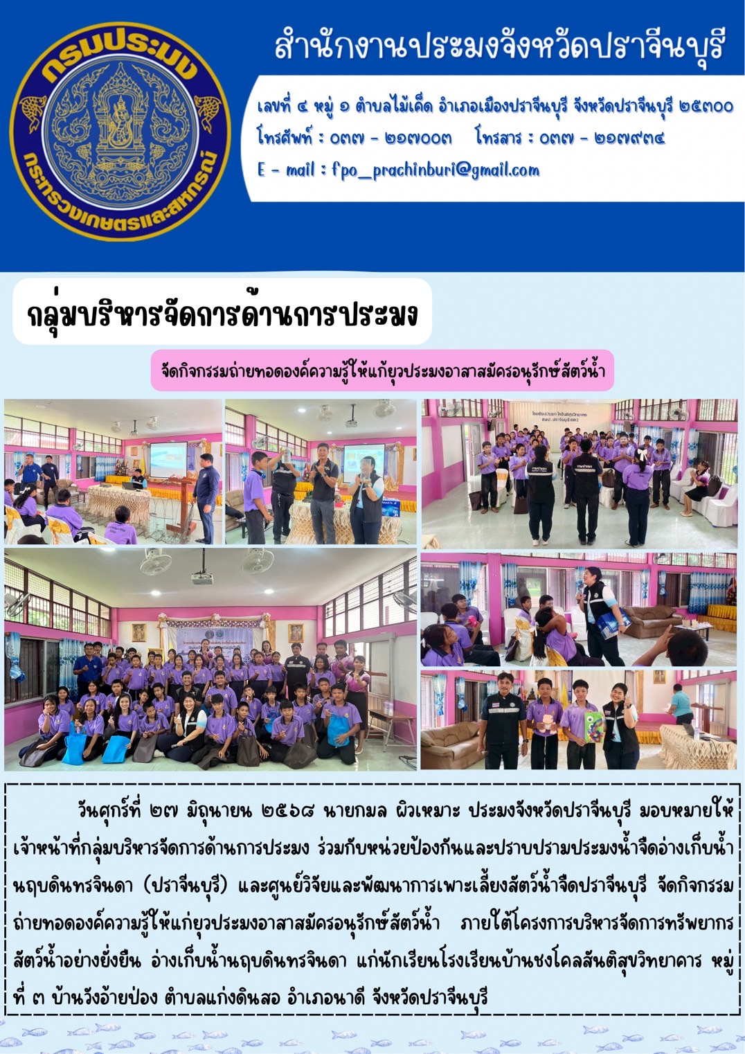 ข่าวประชาสัมพันธ์ กลุ่มบริหารจัดการด้านการประมง จัดกิจกรรมถ่ายทอดองค์ความรู้ให้แก้ยุวประมงอาสาสมัครอนุรักษ์สัตว์น้ำ