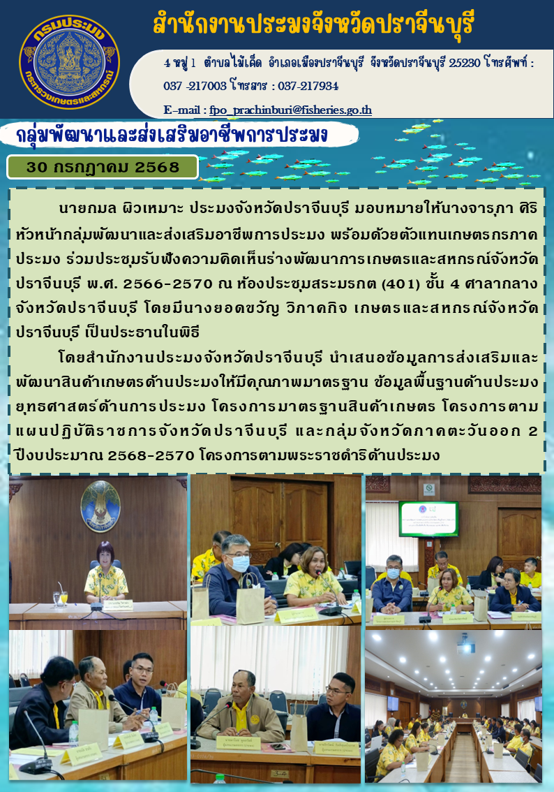 ข่าวประชาสัมพันธ์ ร่วมประชุมรับฟังความคิดเห็นร่างพัฒนาการเกษตรและสหกรณ์จังหวัด ปราจีนบุรี พ.ศ. 2566-2570