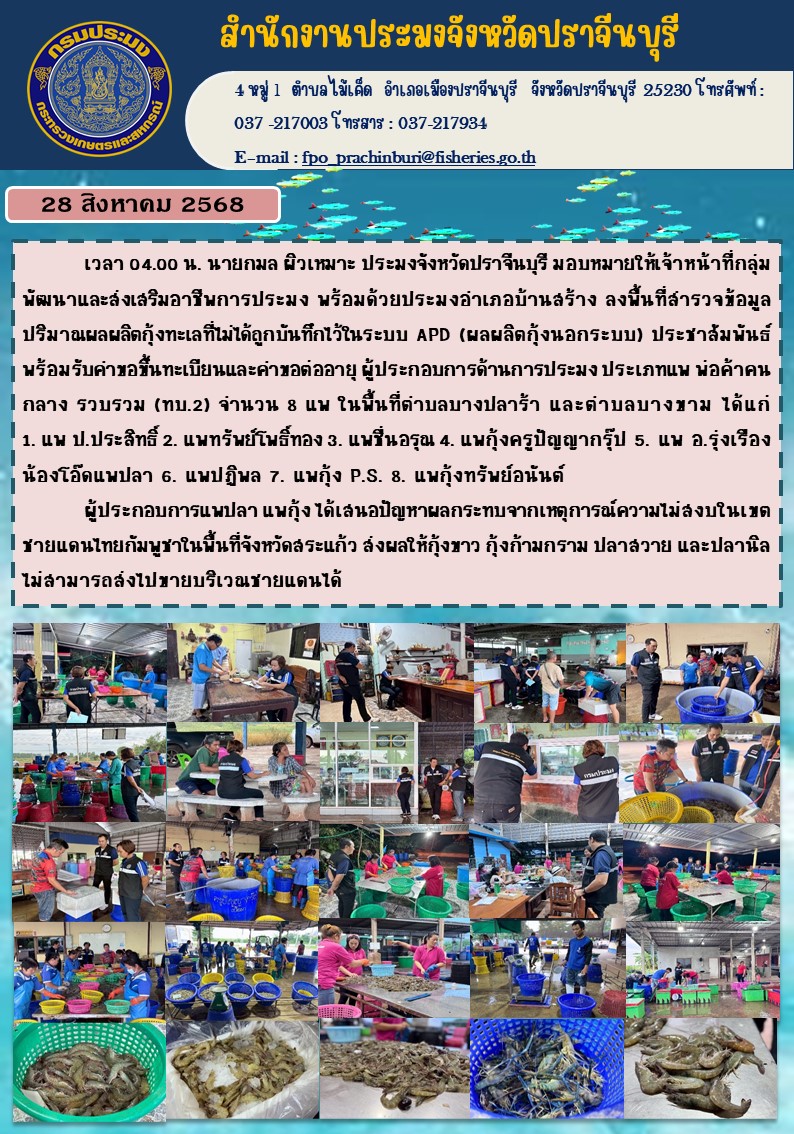 ข่าวประชาสัมพันธ์ ลงพื้นที่สารวจข้อมูล ปริมาณผลผลิตกุ้งทะเลที่ไม่ได้ถูกบันทึกไว้ในระบบ APD (ผลผลิตกุ้งนอกระบบ)