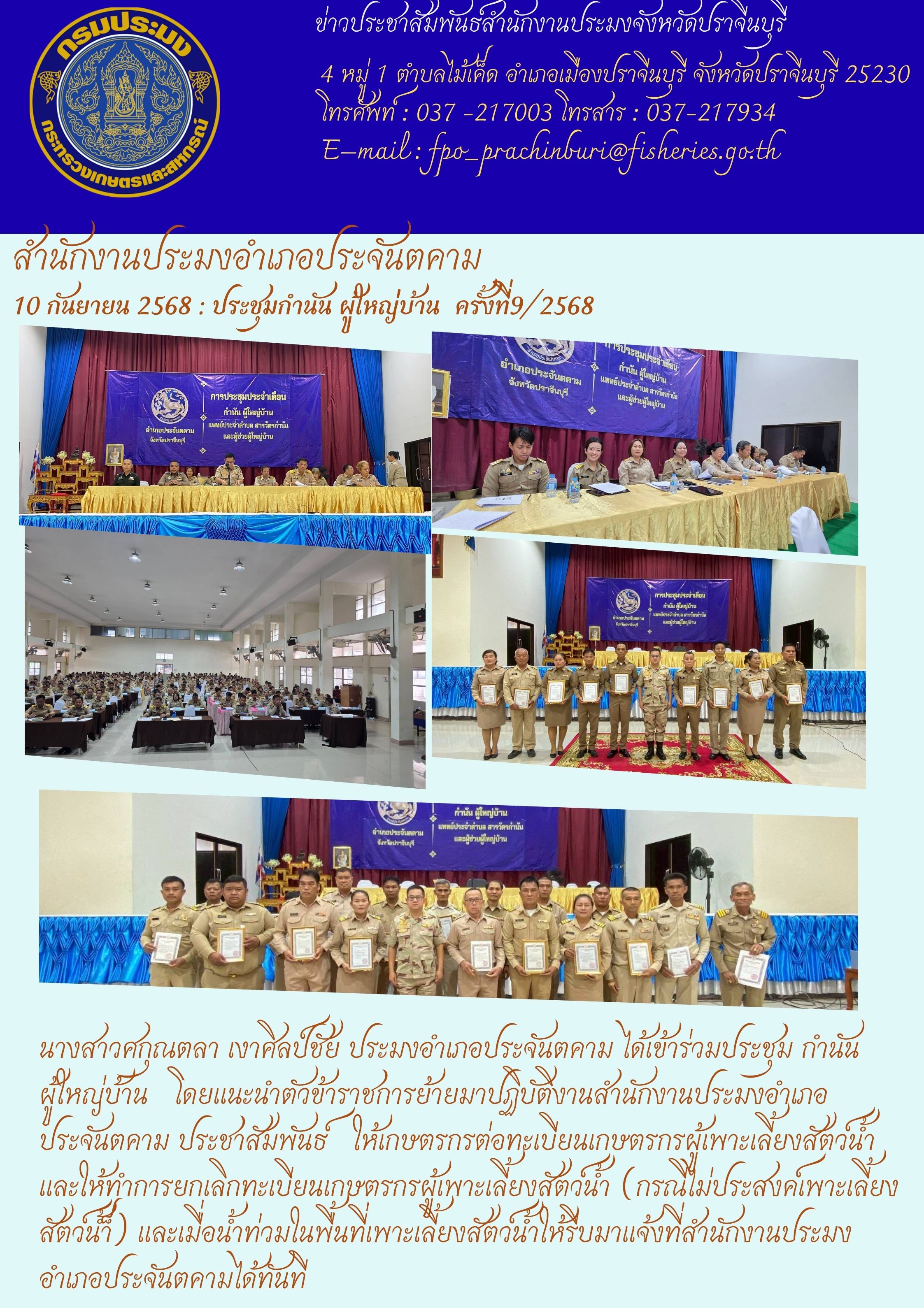 ข่าวประชาสัมพันธ์ สำานักงานประมงอำเภอประจันตคาม ประชุมกำนัน ผู้ใหญ่บ้าน ครั้งที่ 9/2568