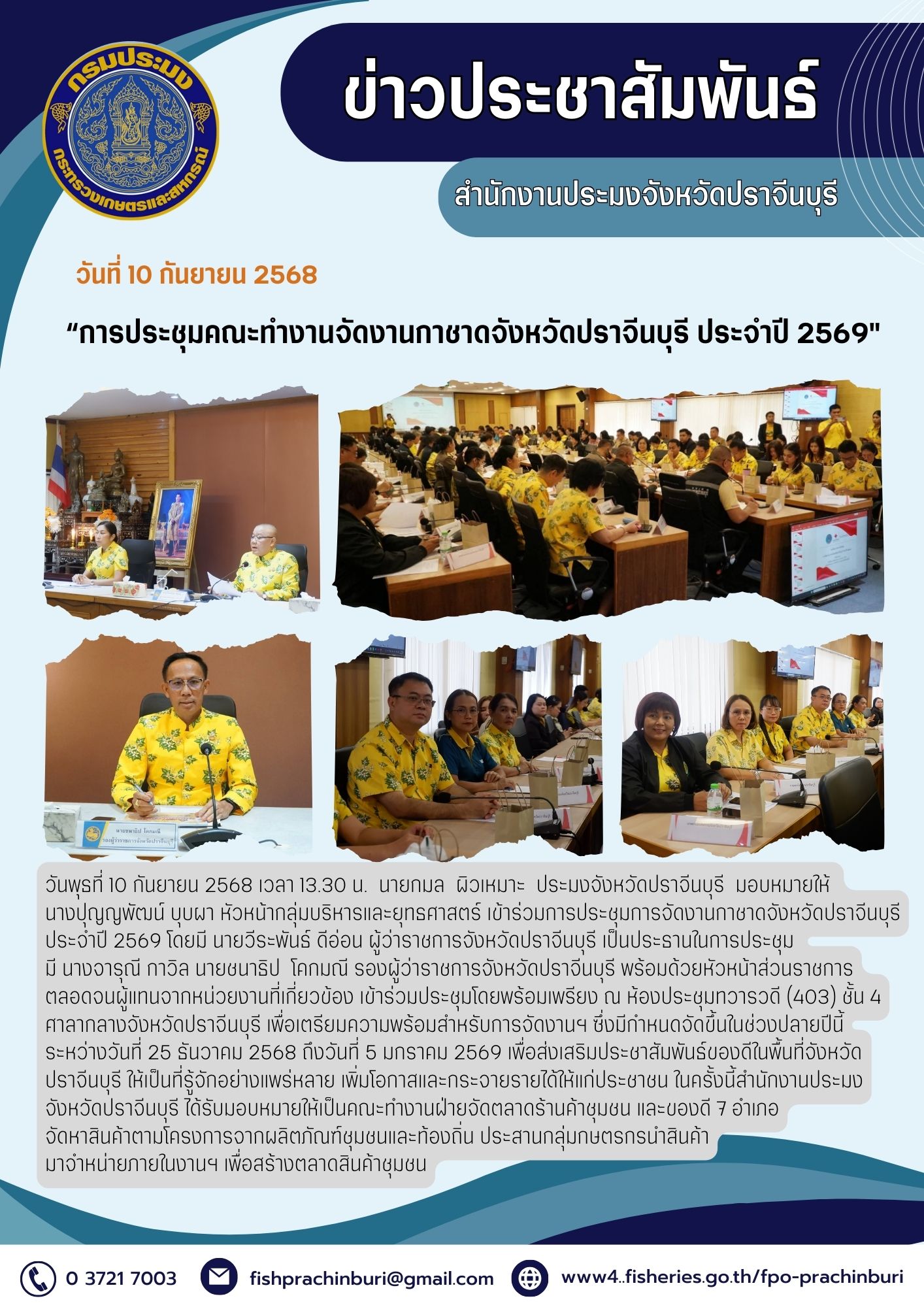 ข่าวประชาสัมพันธ์ การประชุมคณะทํางานจัดงานกาชาดจังหวัดปราจีนบุรี ประจําปี 2569