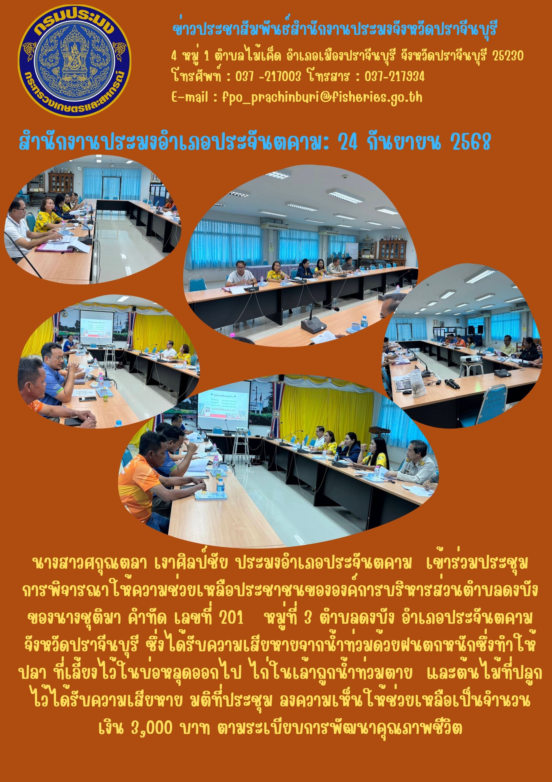 ข่าวประชาสัมพันธ์ สำนักงานประมงอำเภอประจันตคาม เข้าร่วมประชุมการพิจารณาให้ความช่วยเหลือประชาชนขององค์การบริหารส่วนตำบลดงบัง