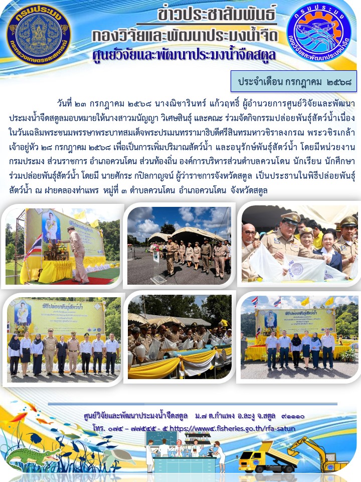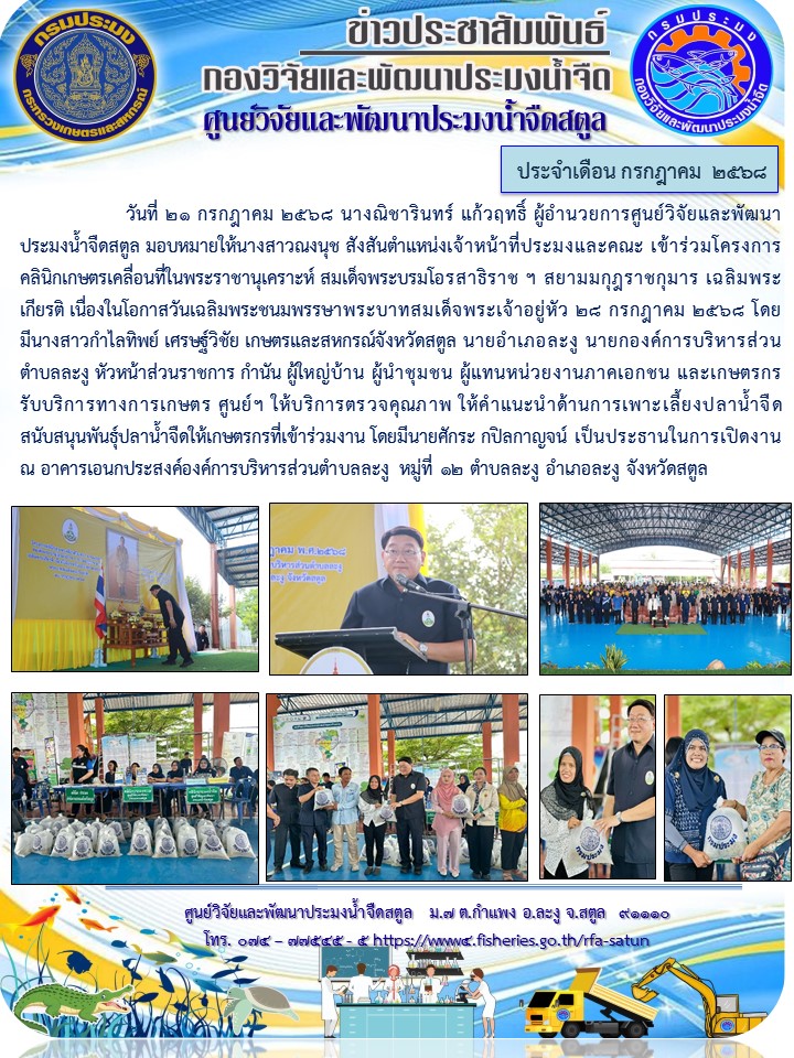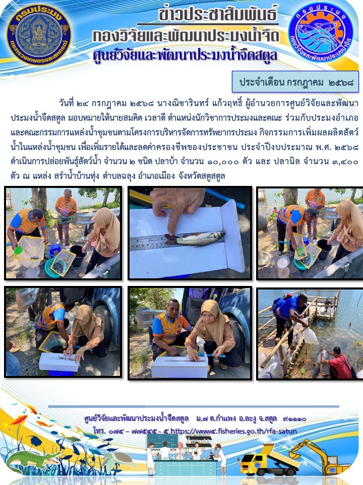รวบรวมข่าวประชาสัมพันธ์ ศูนย์วิจัยและพัฒนาประมงน้ำจืดสตูล